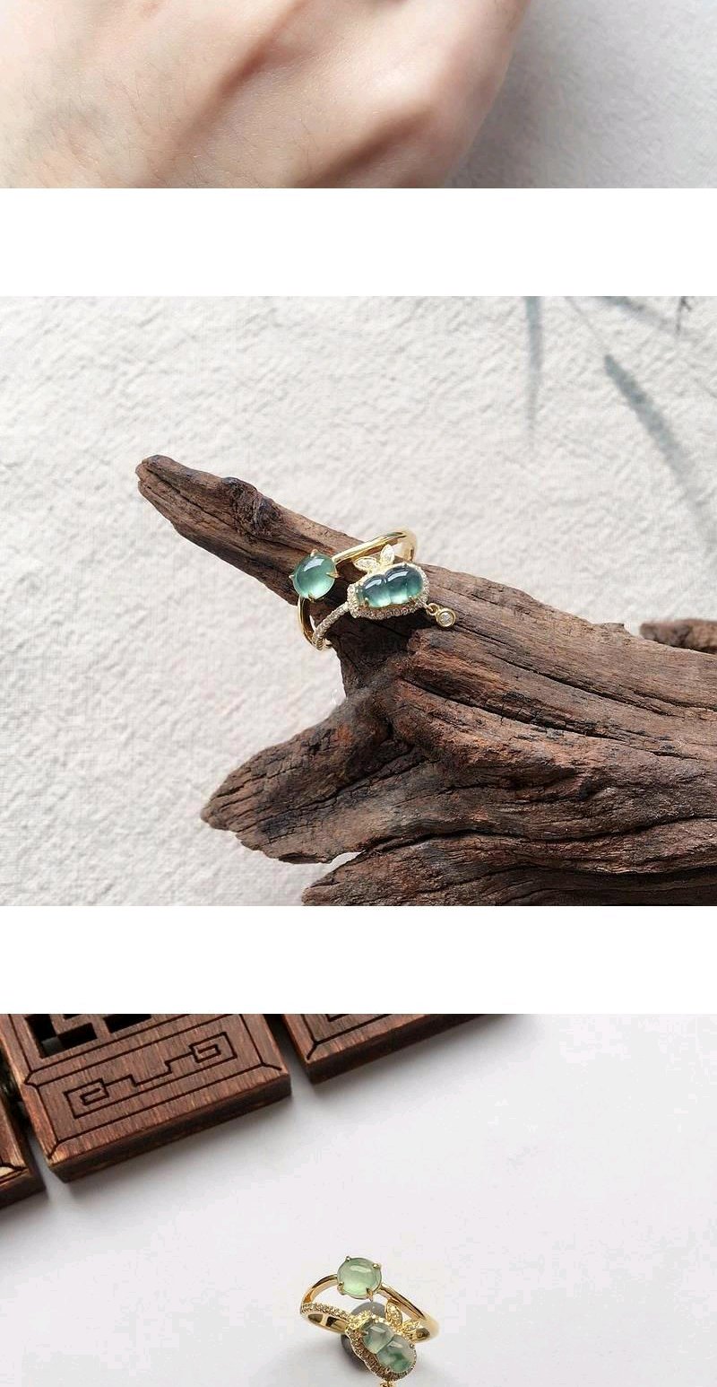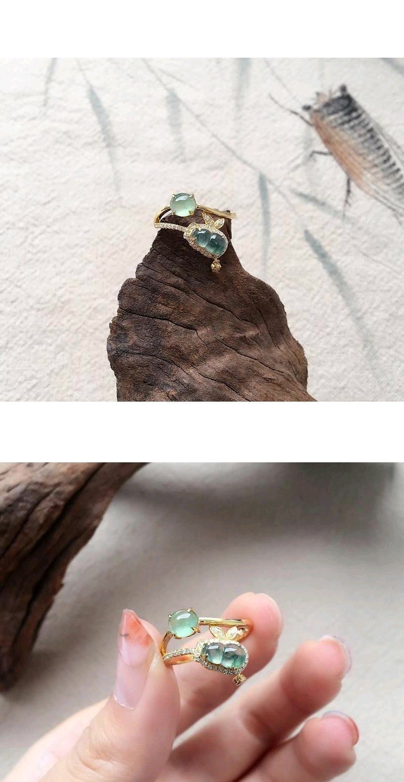 玉圆蛋小葫芦戒指新款精美精致女款开口戒托气质款