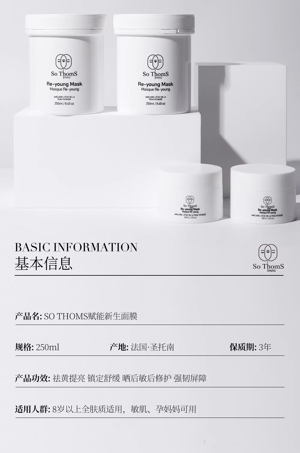 【买即赠旅行装】SoThomS苏彤氏焕颜柔润涂抹面膜, 法国植萃复合物,多重分子玻尿酸,敷完瞬间如磨皮美白