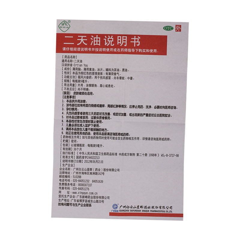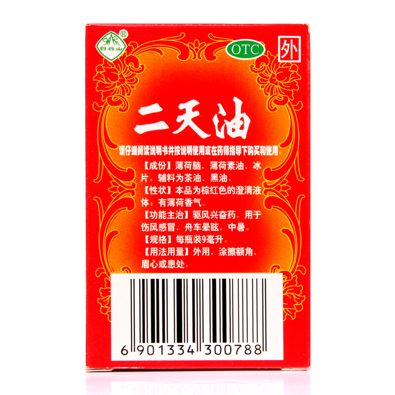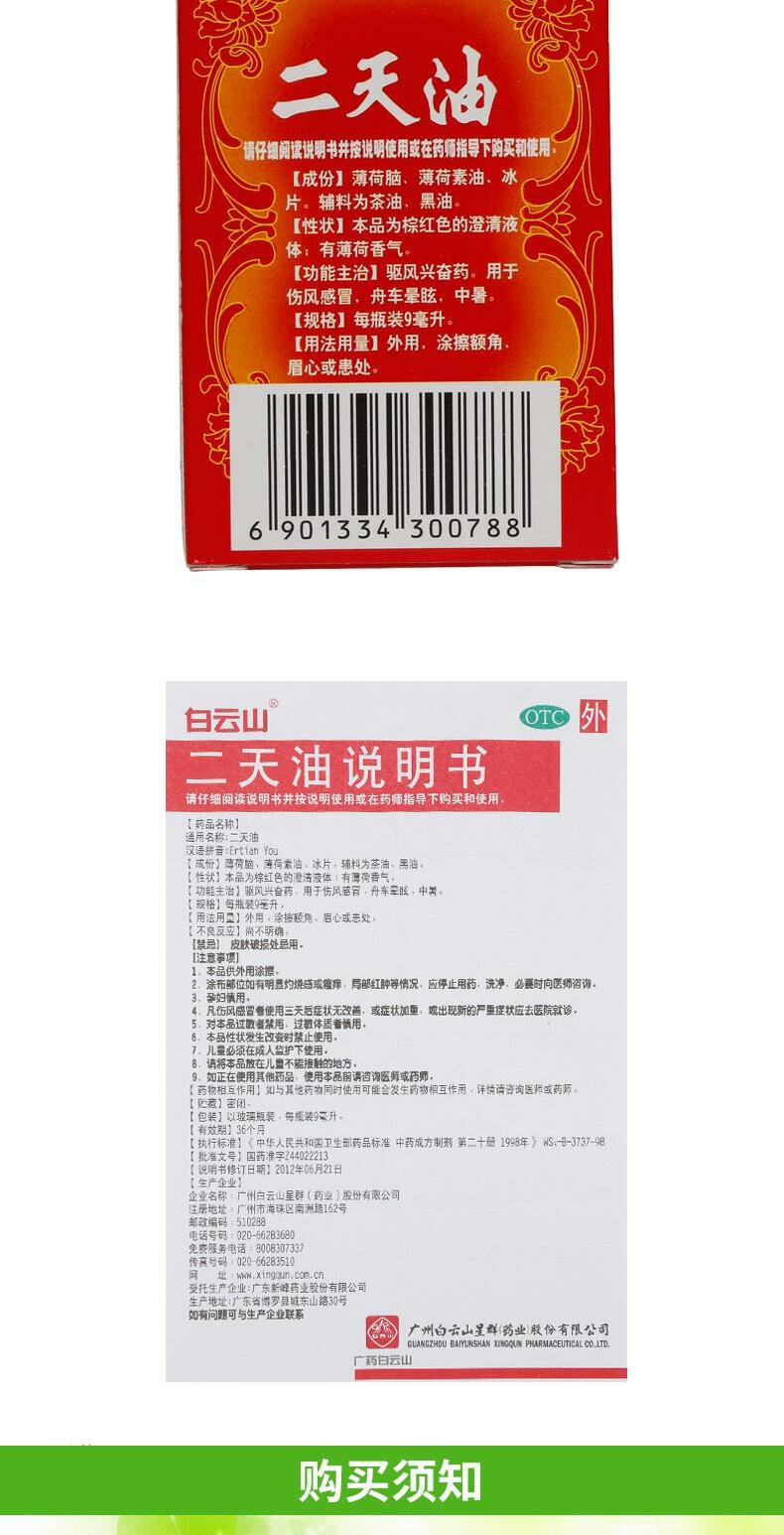 白云山 二天油9ml伤风感冒 舟车晕眩晕车中暑肚痛 提醒脑神OTC