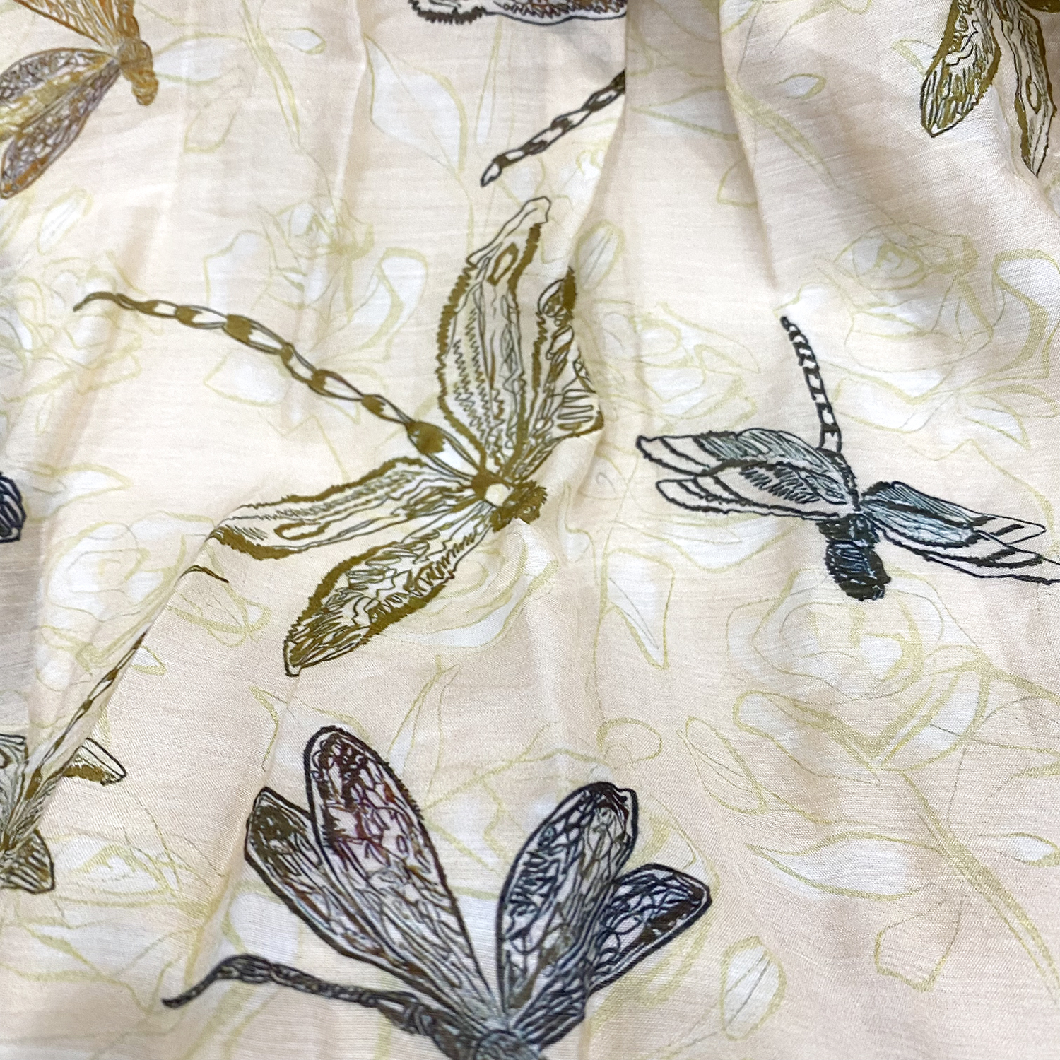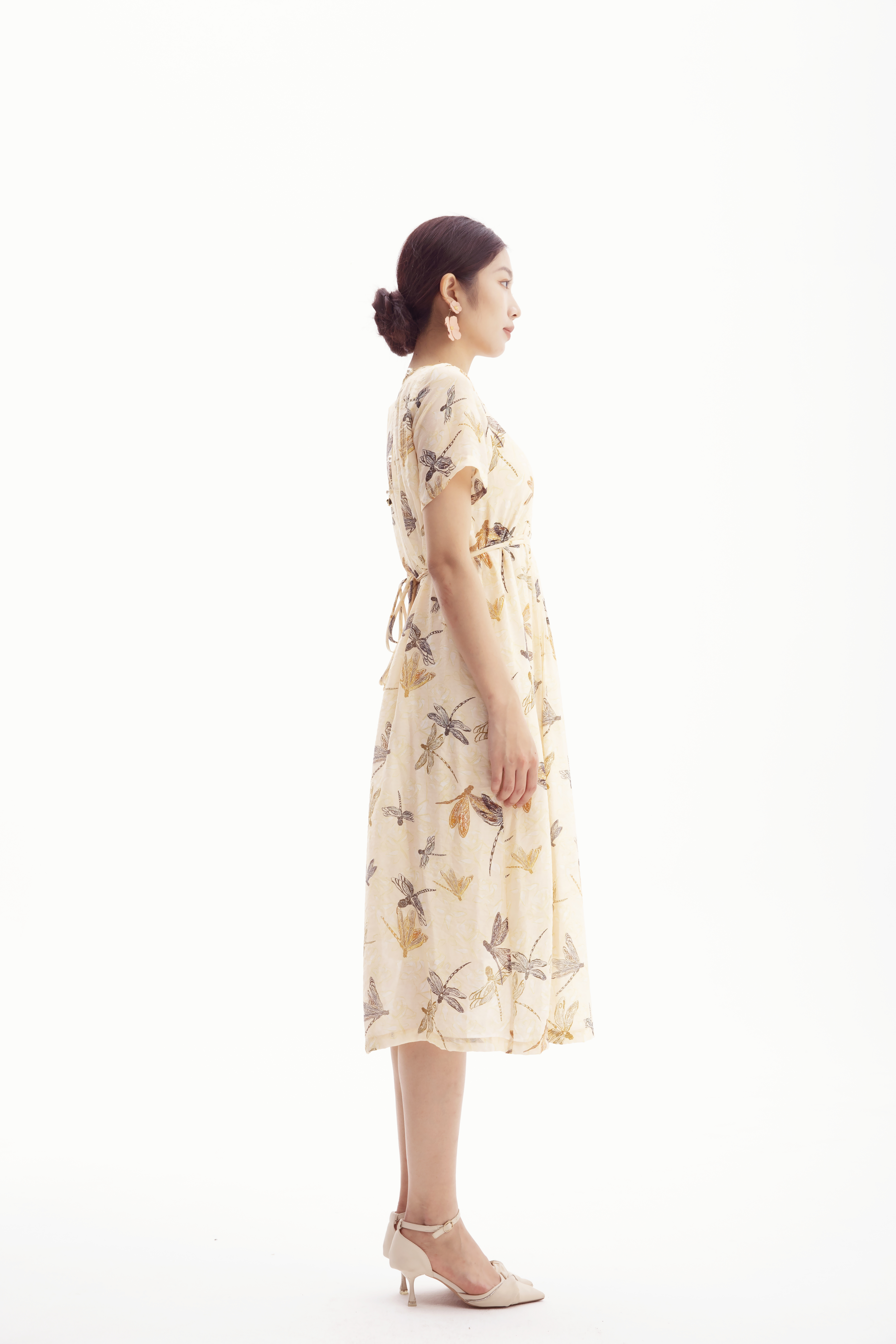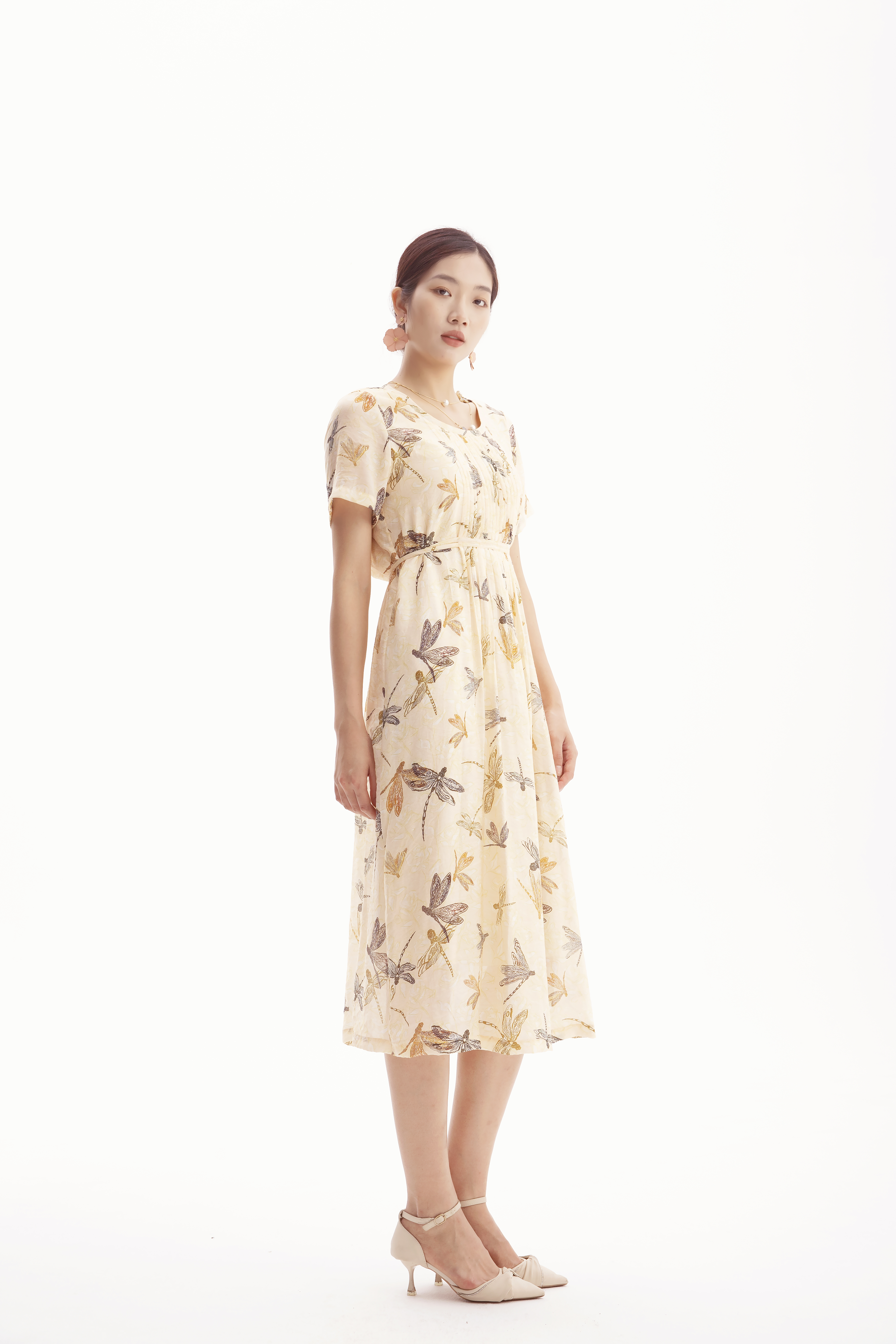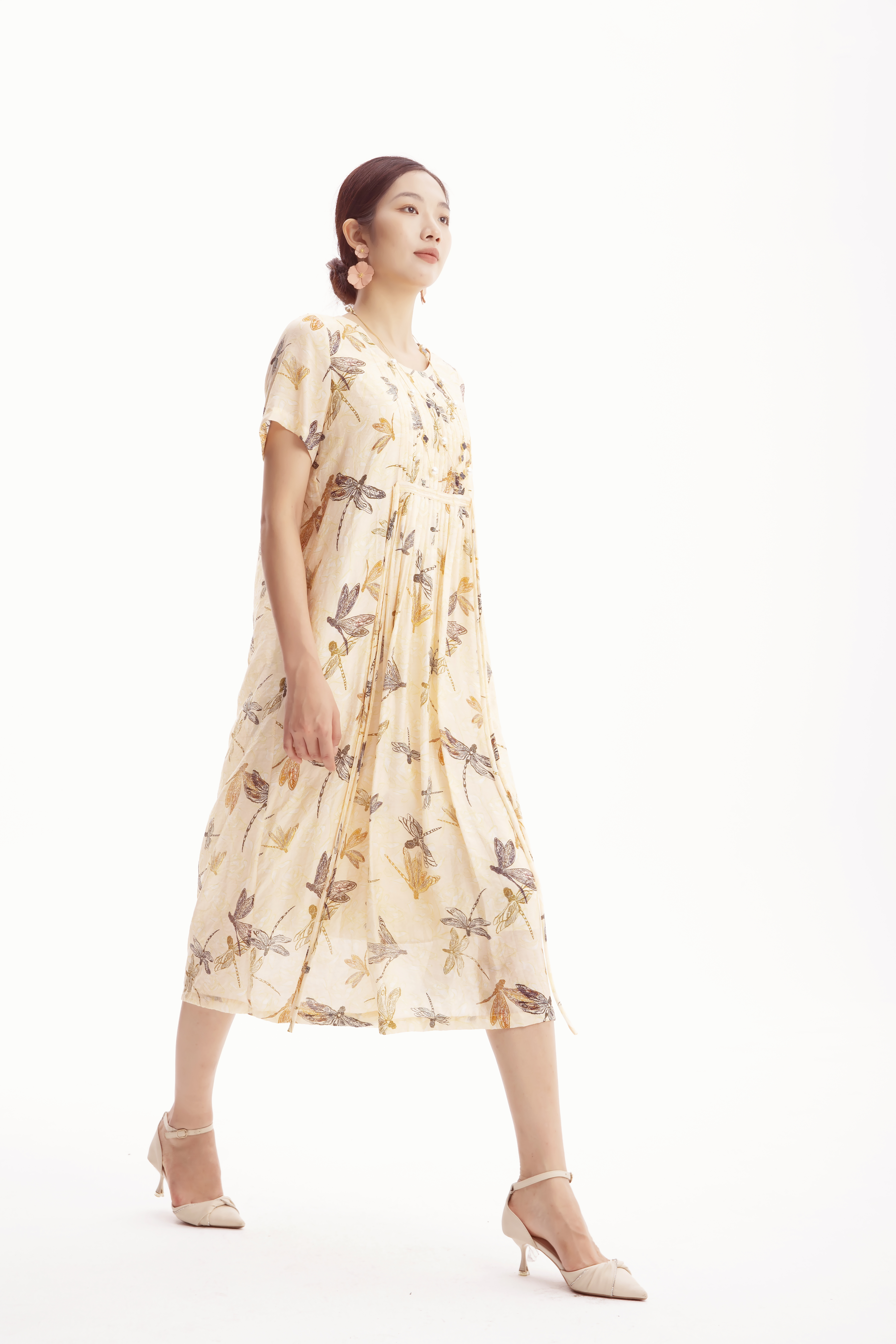 HJ2S57_如梦令色_连衣裙_夏季_优雅复古蜻蜓印花圆领收褶宽松 A 字长裙_高级女装_BERNIEELEN 伯妮斯茵