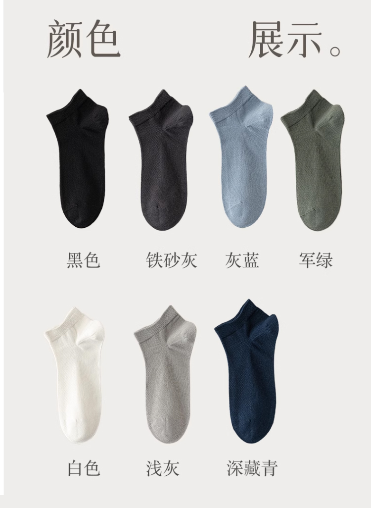 【品名】【超值7双装】LUIS VECENTE抑菌防臭苎麻棉透气短袜/隐形袜 男女款7双装 【规格】 男款短袜:黑色、铁砂灰、灰蓝、军绿、白色、浅灰、深藏青 男款隐形袜:黑色、铁砂灰、灰蓝、灰绿、白色 女款短袜:黑色、白色、淡紫、浅灰、浅绿、浅黄、浅粉 女款隐形袜:黑色、淡紫、水蓝、天灰、浅绿、浅黄、白色 【产地】国内 【发货包装】独立包装 【发货地】浙江 【发货快递】韵达 【补邮费地区】 新疆、西藏+15元 北京、上海+1元 【发货时效】48-72小时,周末节假日顺延 |