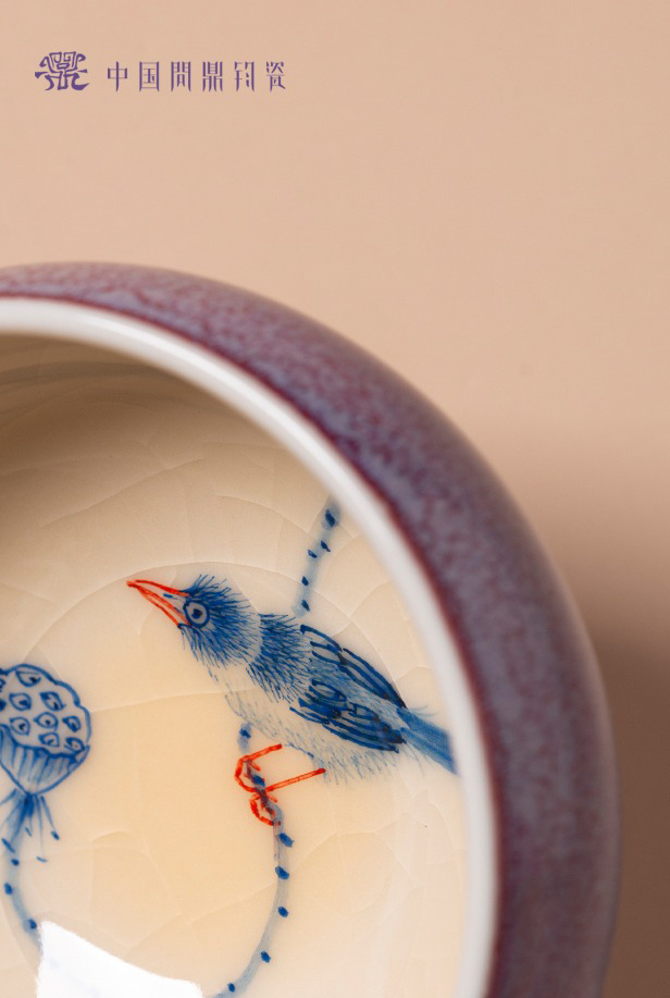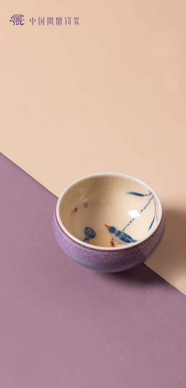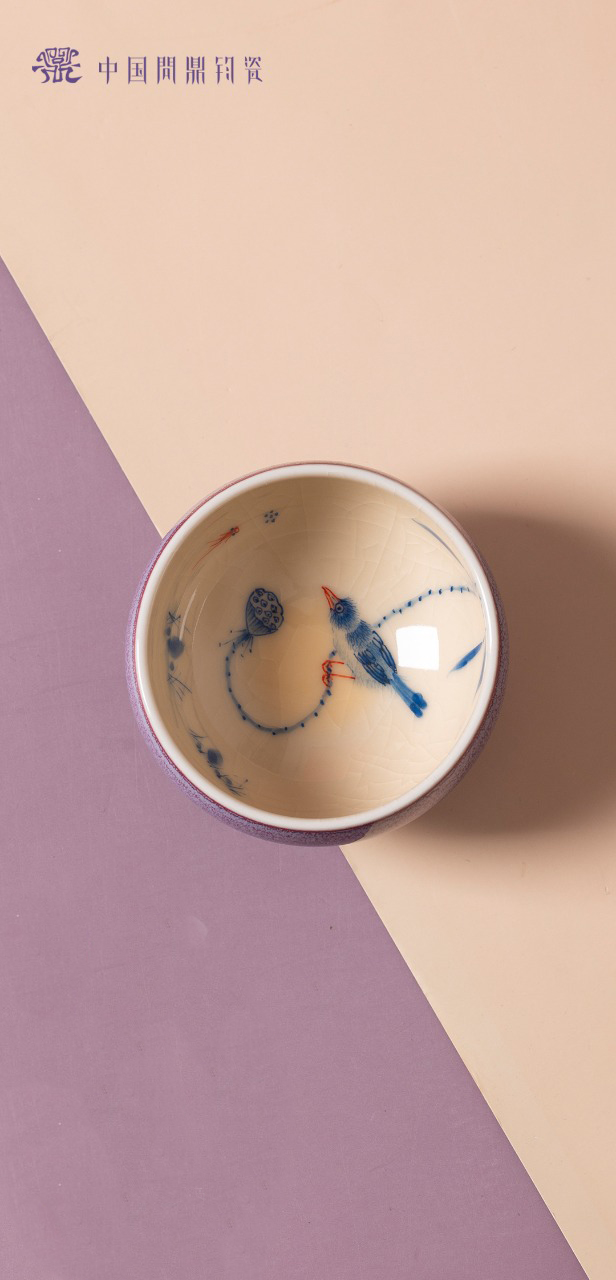 问鼎钧瓷鹅黄青花平口杯(荷塘晓色)(缺货)