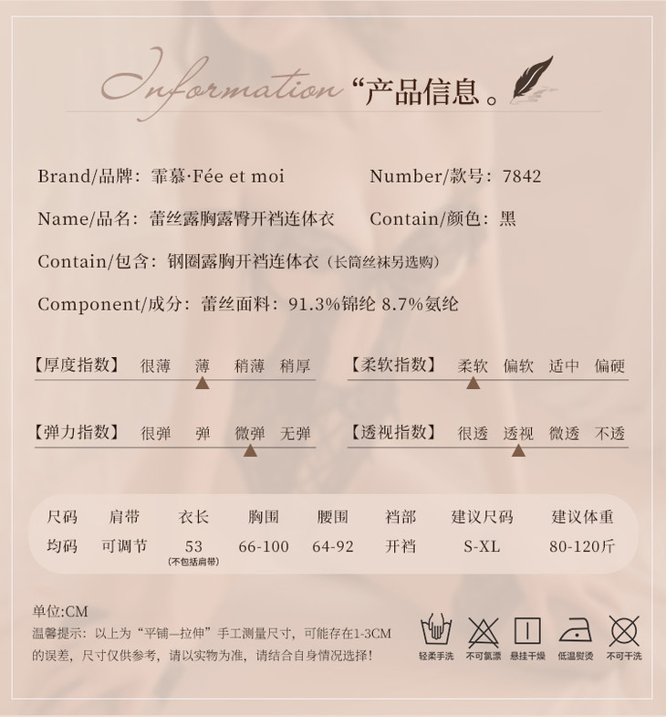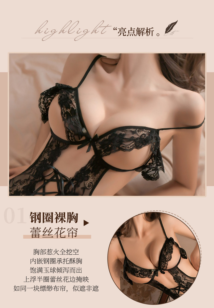 热销内衣 蕾丝露胸露臀开裆连体衣 号7842