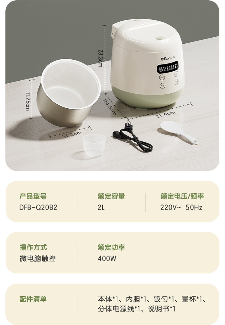 【快递】小熊2升速煮电饭煲DFB-Q20B2