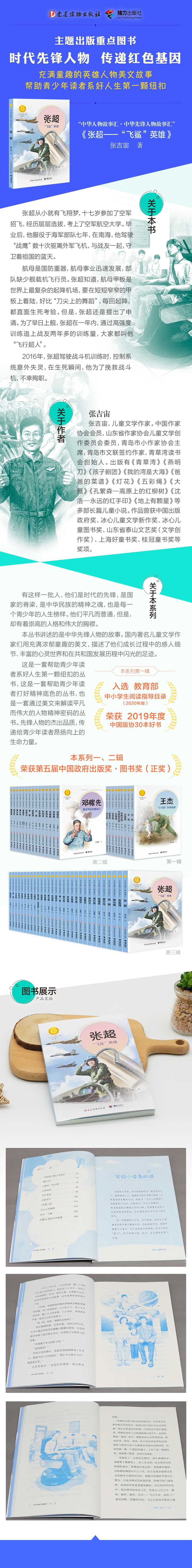 在飞行学院学习时,张超就展示出了过人的天赋,门门功课优秀,次次战斗机改装首个单飞;在父母和乡亲们的眼中,他是一个孝顺的孩子;在妻子的眼中,他是一个好丈夫,他的爱比天空更辽阔,比大海更宽广;在首长的眼中,他是一个飞行的;好苗子;在战友们的眼中,他是一个乐于助人的好兄弟;在空军地勤眼中,他是一个没有架子的好哥们儿二○一六年春天,张超驾驶绰号为;飞鲨的歼_15舰载机进行陆地模拟着舰训练时,飞机突发;电传故障,在生死瞬间,他没有先选择跳伞,而是用尽全力去挽救战斗机,不幸以身殉职。打开这本书,你会发现,一个英雄的身影,飞翔在碧海蓝天之间。