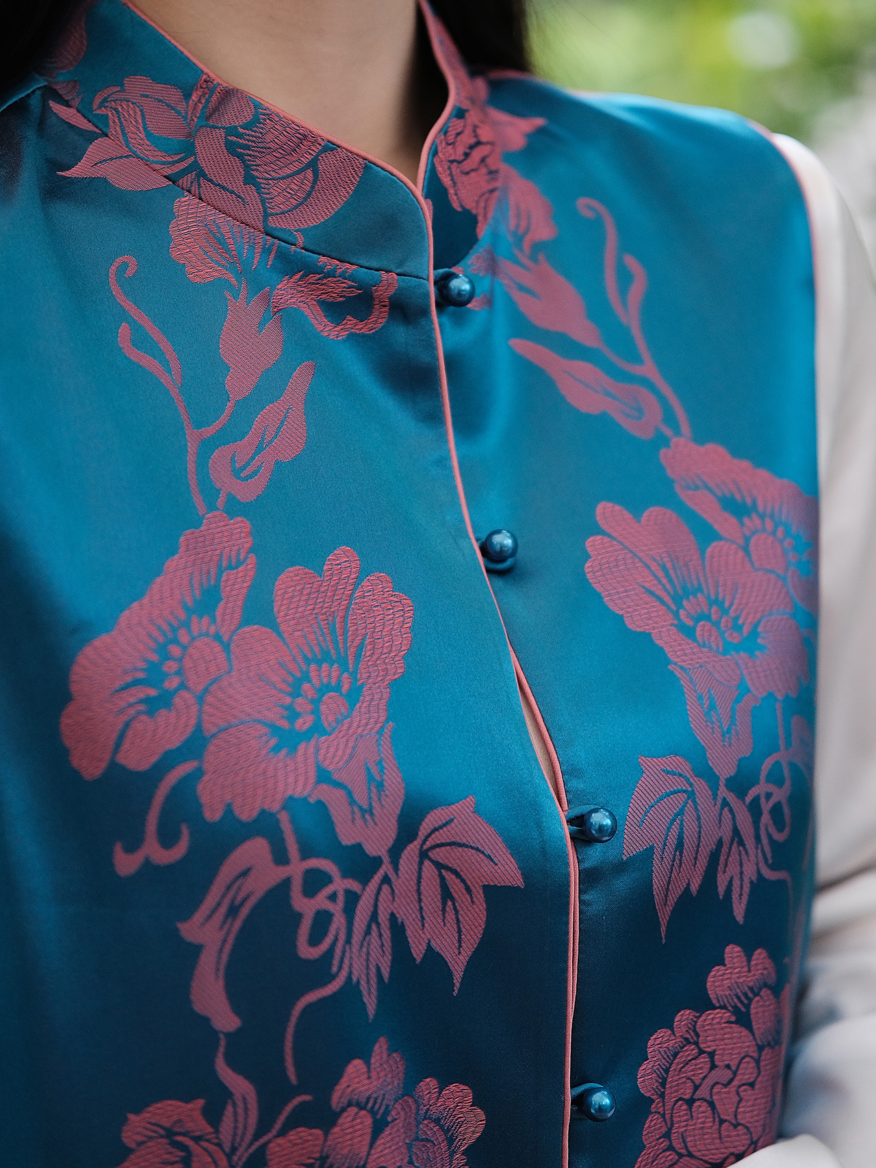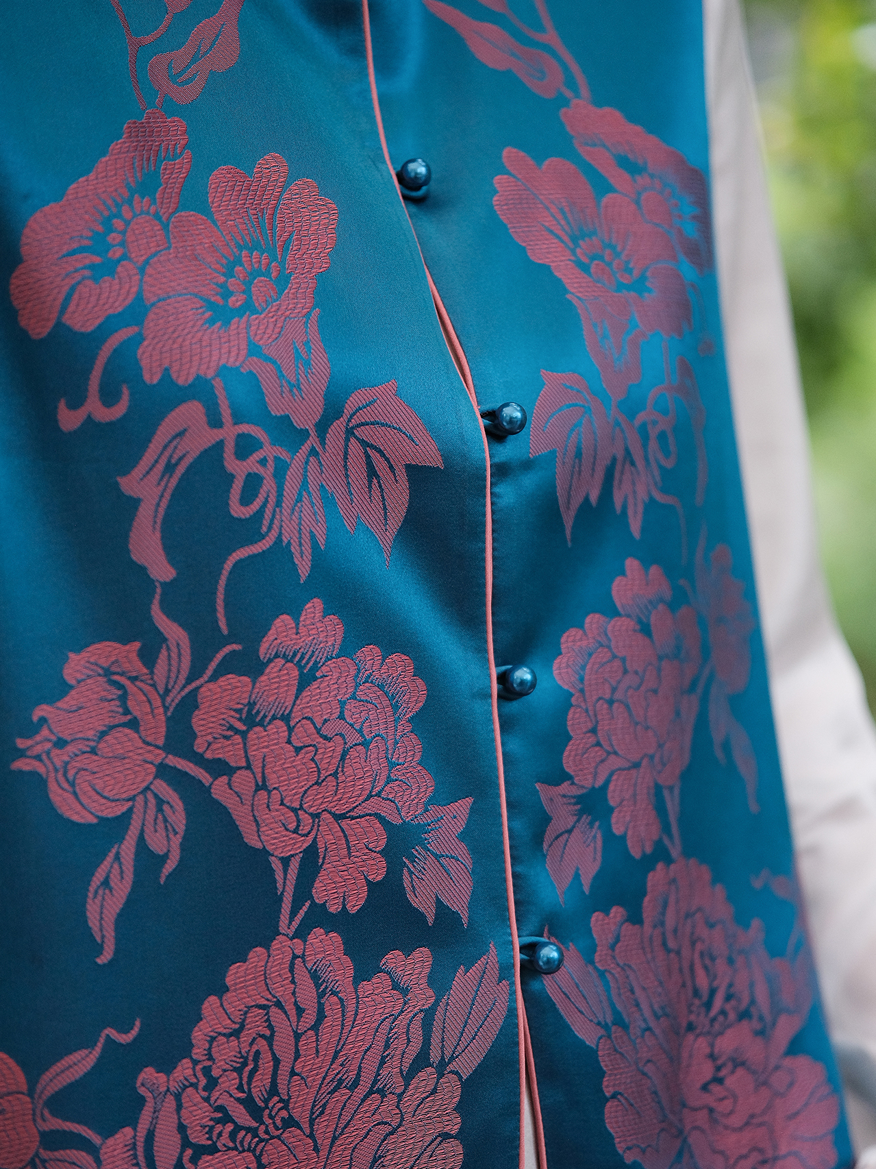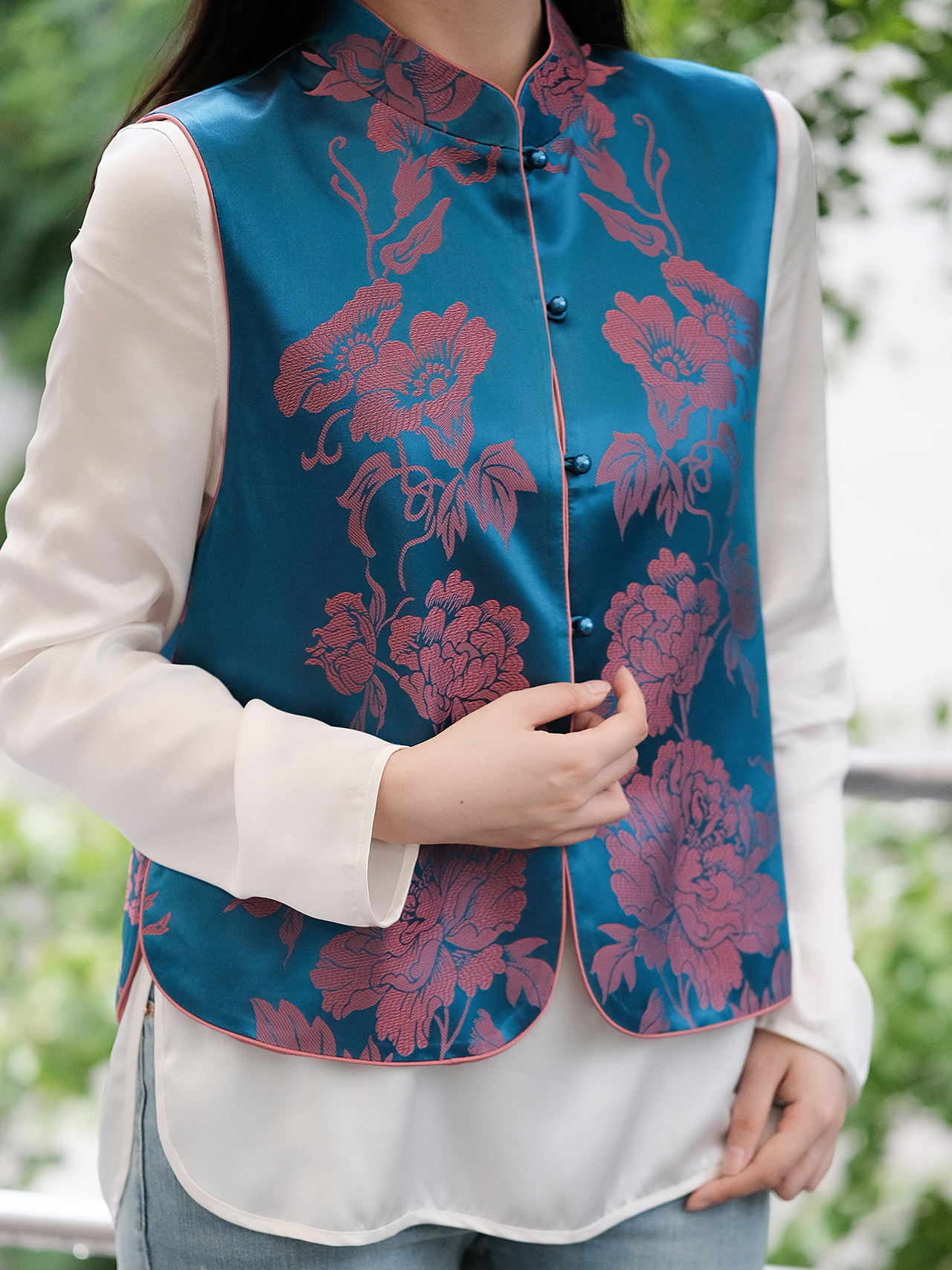 盛唐牡丹 |花锦缎喜鹊纹双面穿马甲