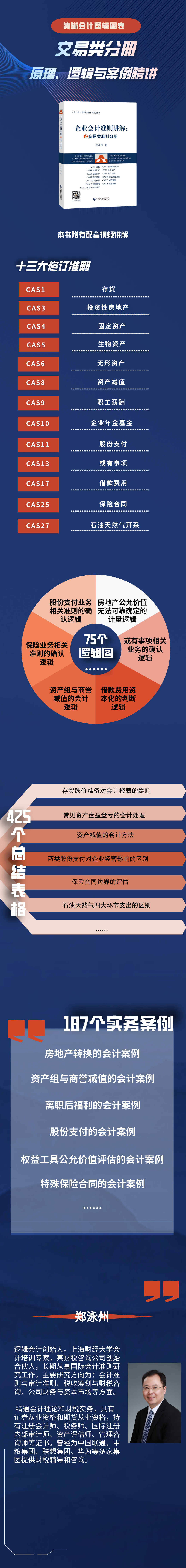 本店提供郑泳州老师的逻辑会计课程、新财税系列课程、注册会计师和会计职称课程,以及相关图书,学习会计准则和财税政策、参加会计考试的小伙伴们看过来!