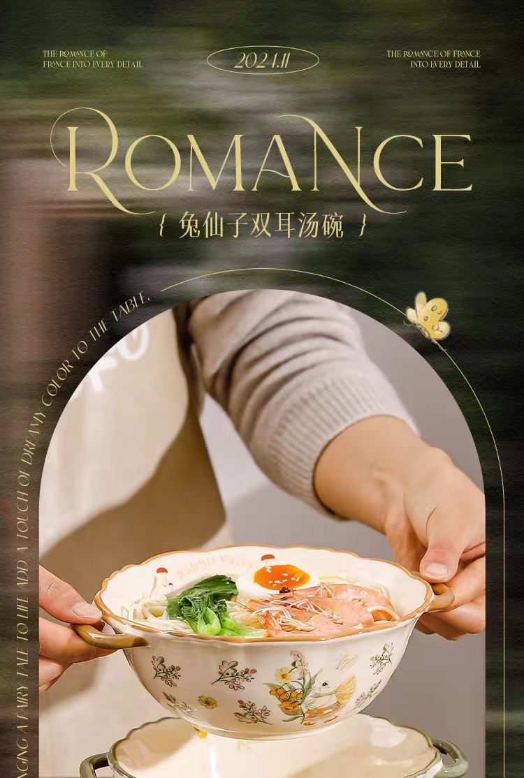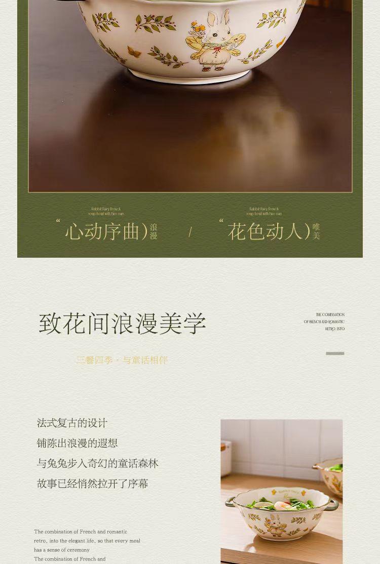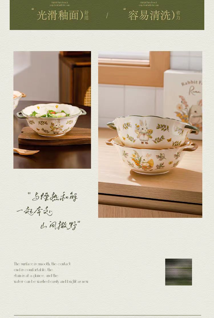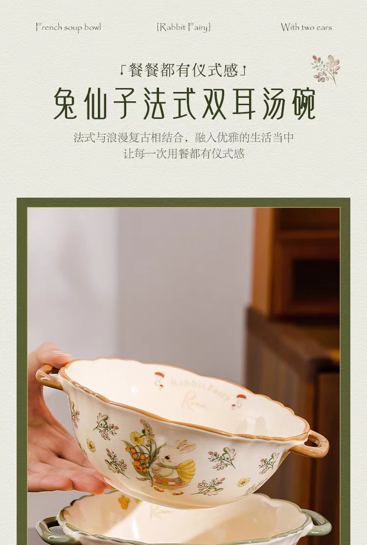 4楼Eubelle欧蓓 川岛屋双耳汤碗陶瓷泡面碗8英寸 活动价:39元