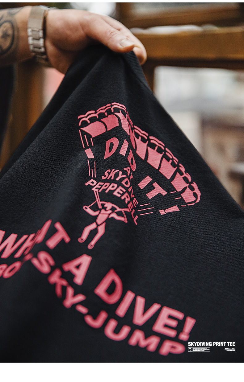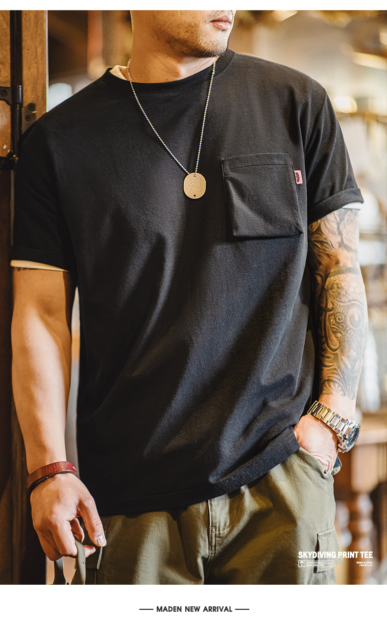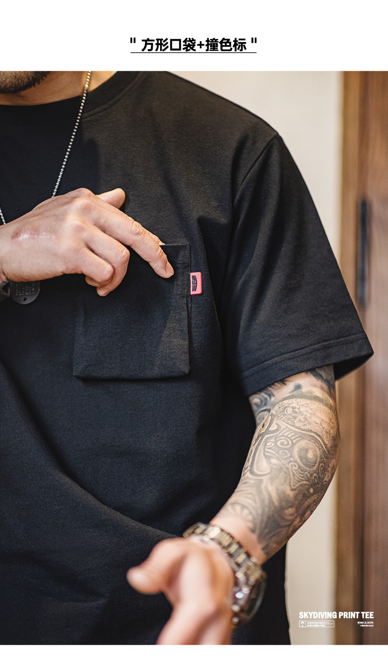 工装优选 美式复古趣味字母印花短袖T恤撞色针织圆领打底衫男夏季