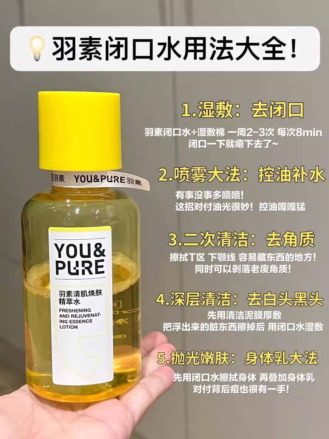 【陈梦推荐】羽素闭口水去粉刺糙皮控油保湿舒缓收毛孔湿敷爽肤水