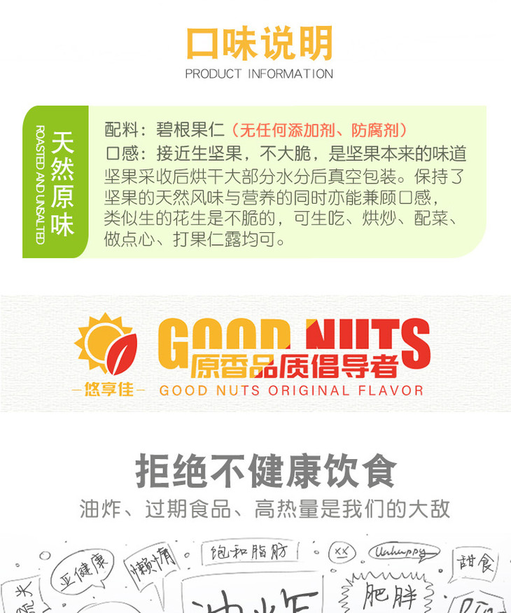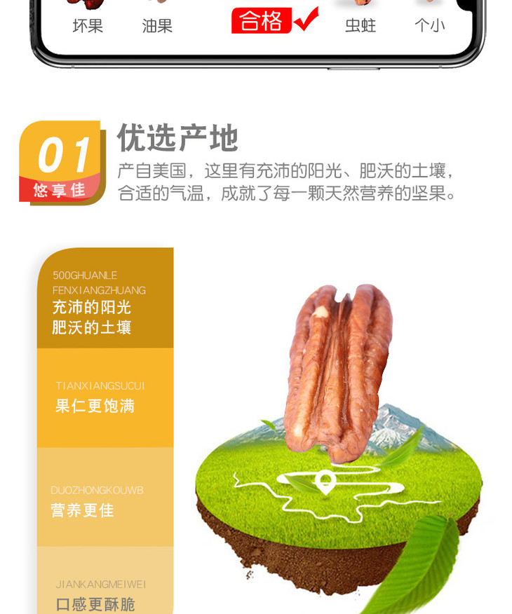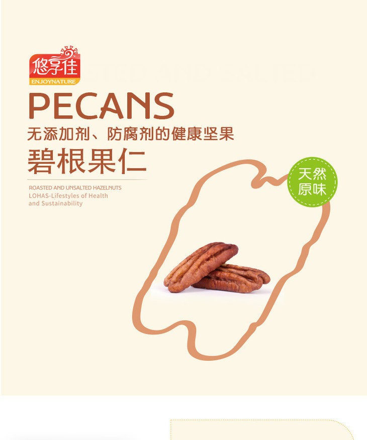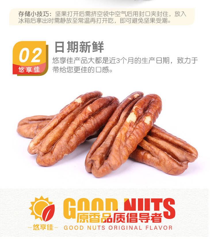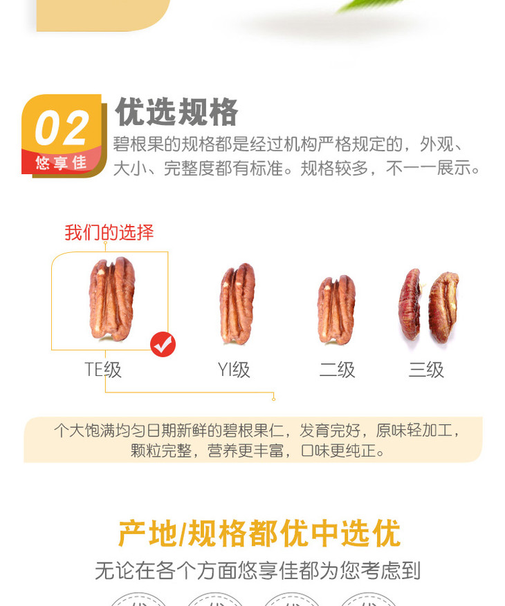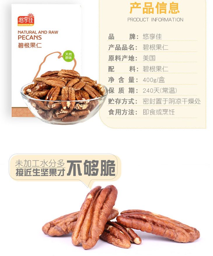 【悠享佳】碧根果仁400g长寿果美国山核桃新鲜原味生干烘焙用坚果零食