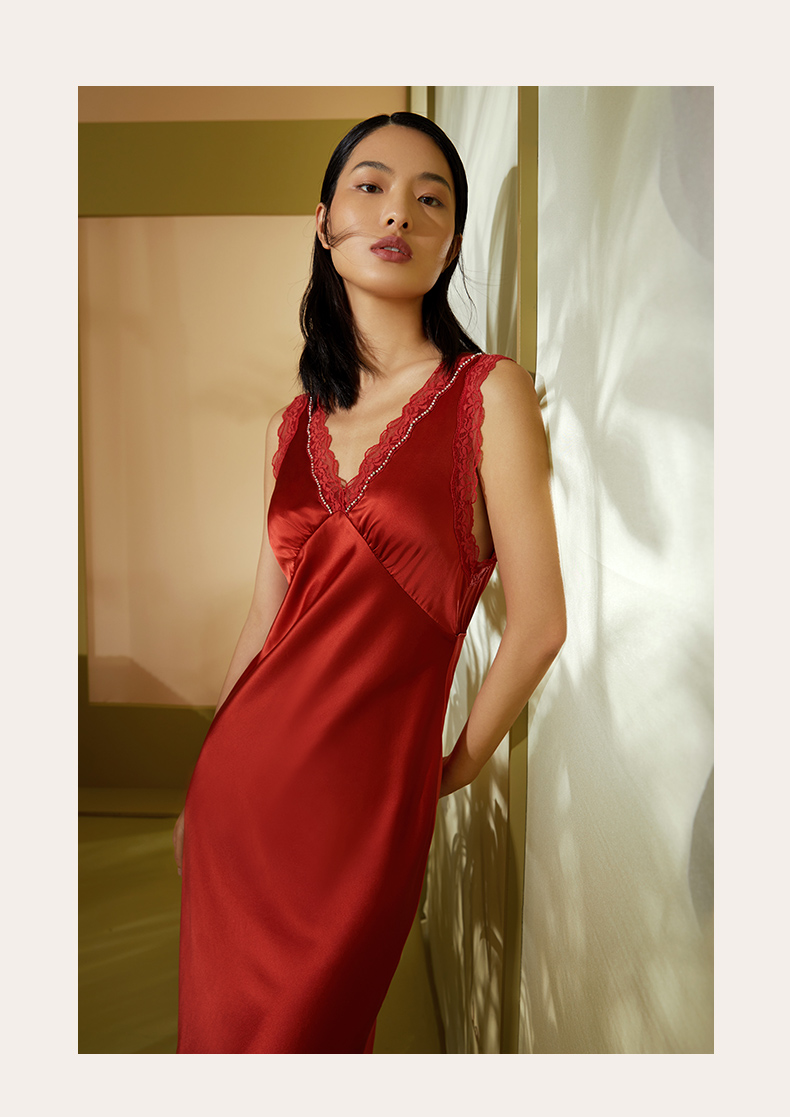 金三塔19姆米重磅100%桑蚕丝真丝性感美背红色婚庆本命年睡裙睡衣 YSFCA302