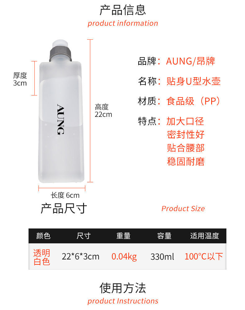 AUNG昂牌越野跑步专用运动水壶马拉松运动越野跑挤压式水壶330ML