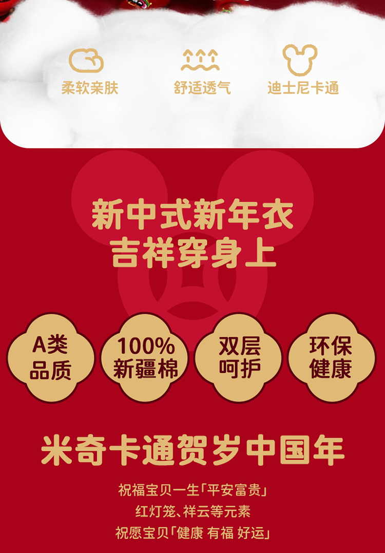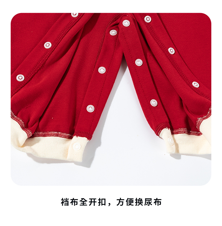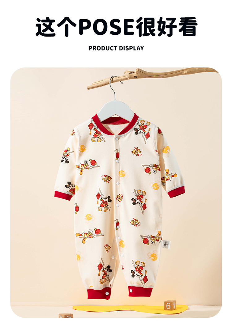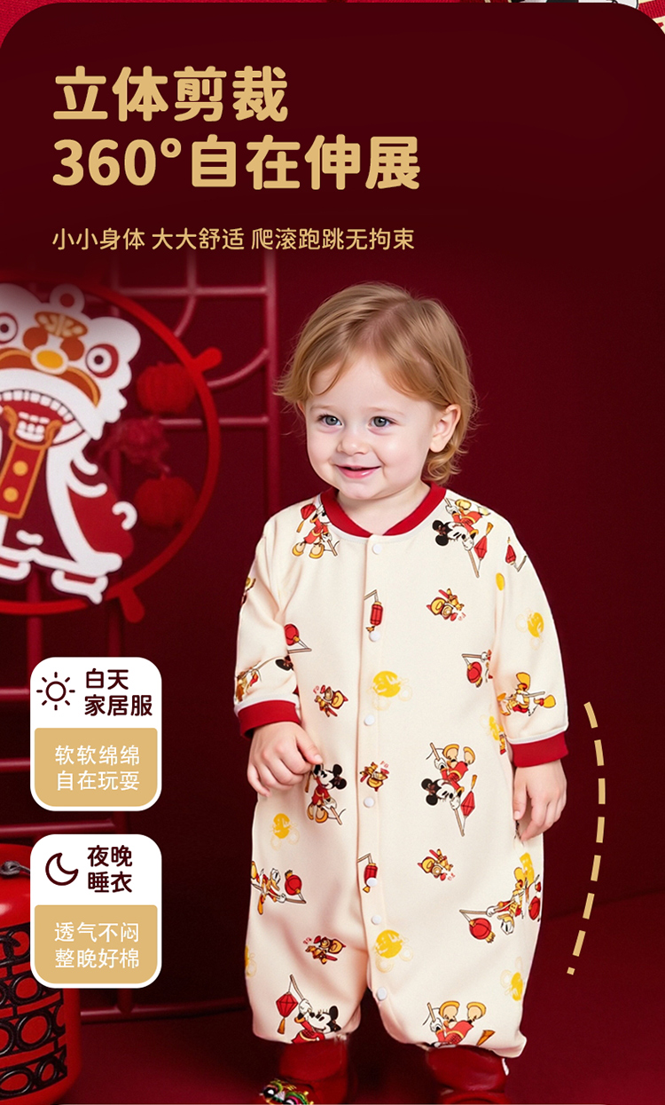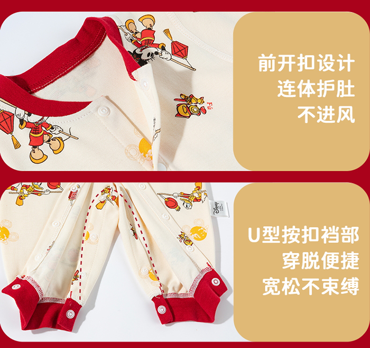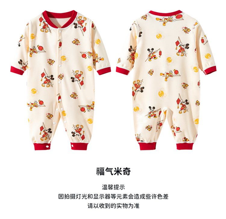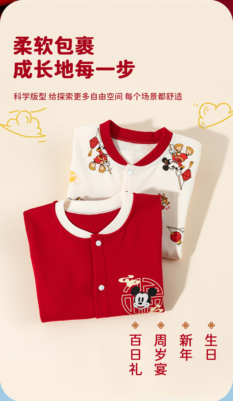 迪士尼【福气米奇】春秋新款男童连体衣男宝满月大红喜庆国风哈衣爬爬服ZD3EL026