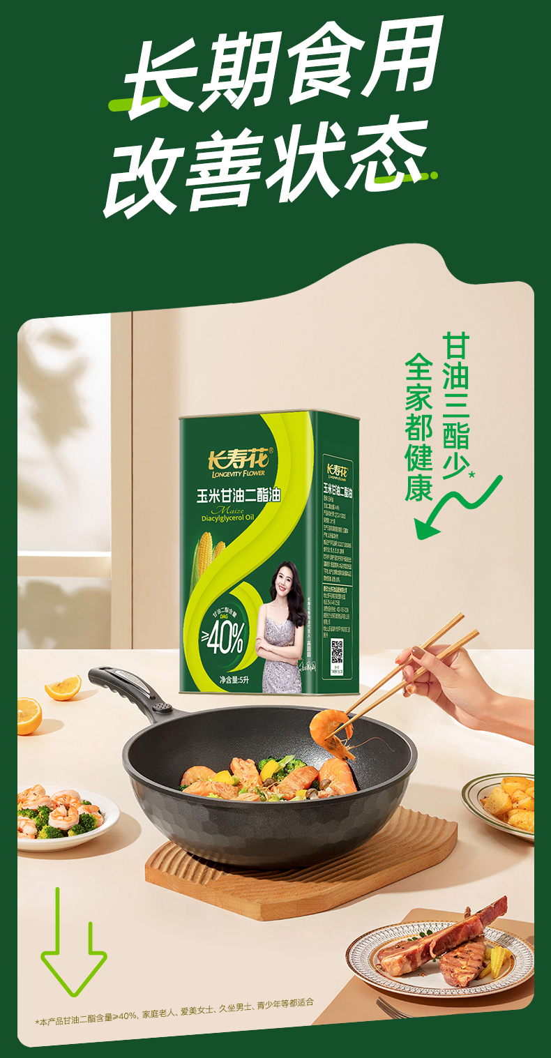 【铁桶】长寿花轻酯甘油二酯食用油40%DAG含量 5L 甘油二酯玉米油家庭装