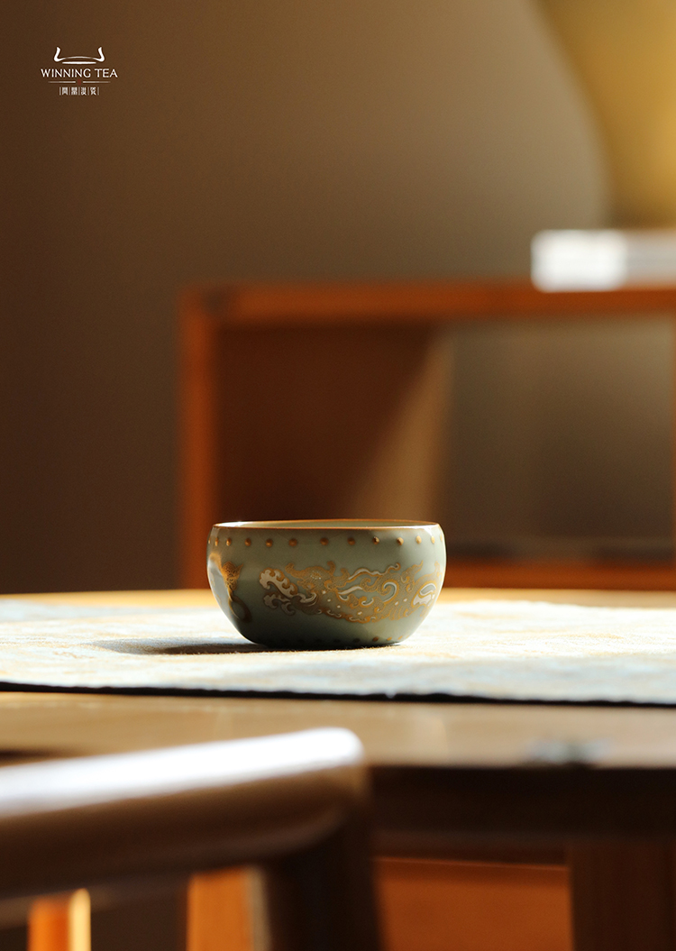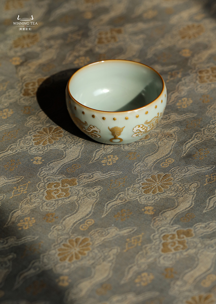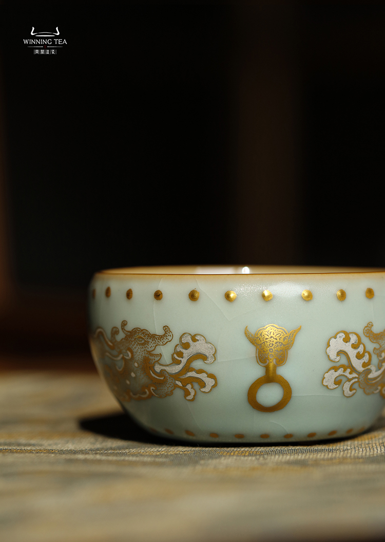 问鼎汝瓷天青大战鼓杯(错金银龙虎纹)