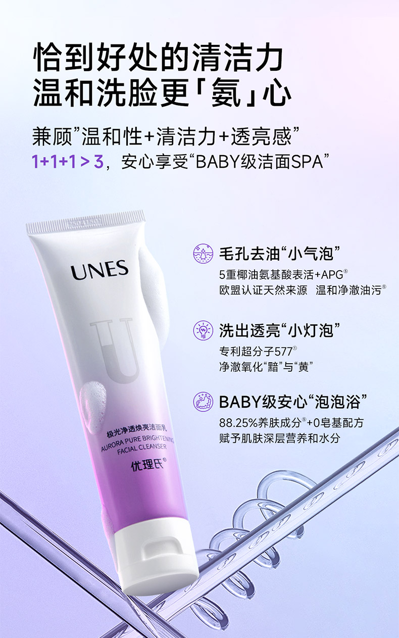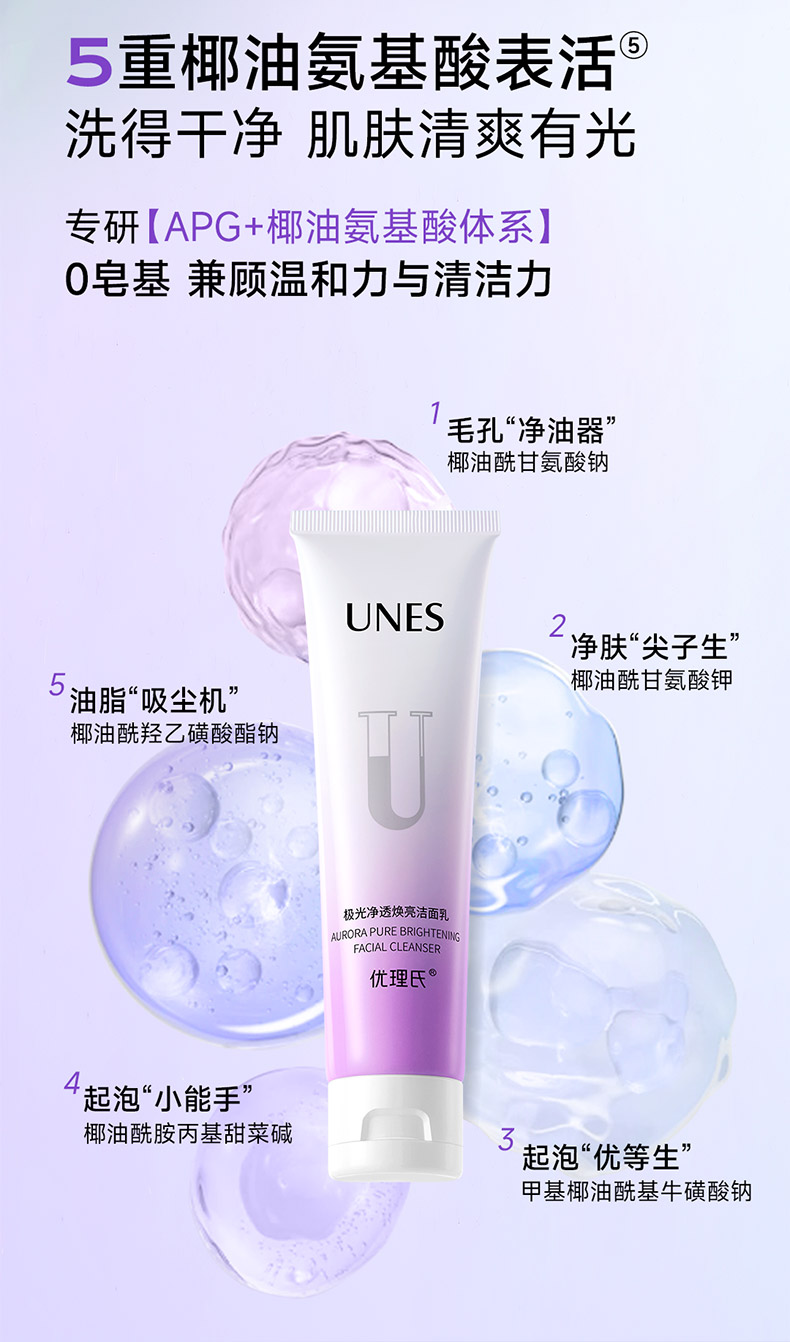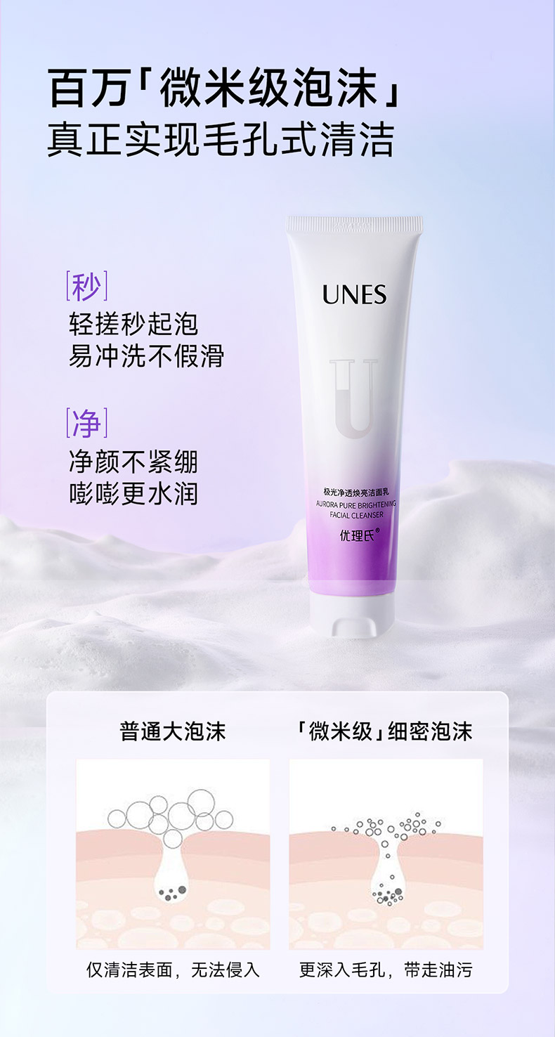 【美白洁面】优理氏极光净透焕亮洁面 乳净油光温和洁面