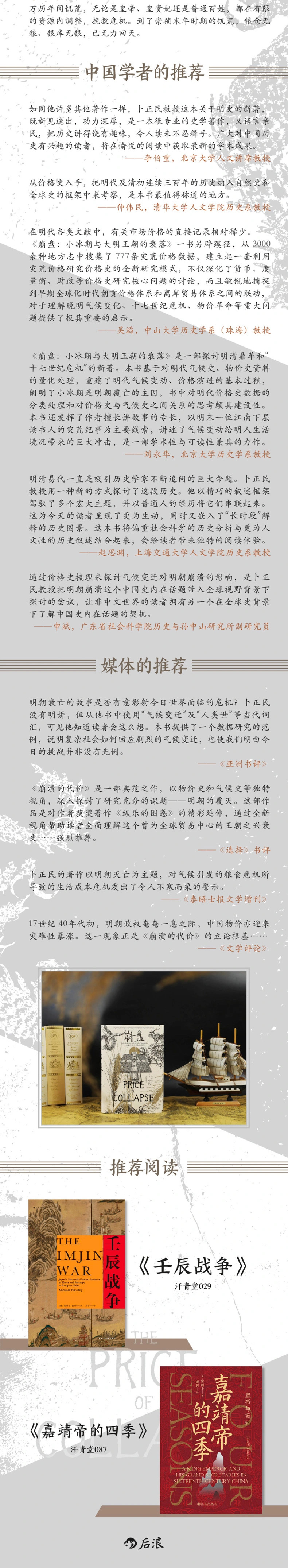从价格史入手,把明代及清初连续三百年的历史纳入自然史和全球史的框架中来考察,是本书最值得称道的地方。