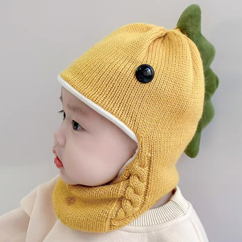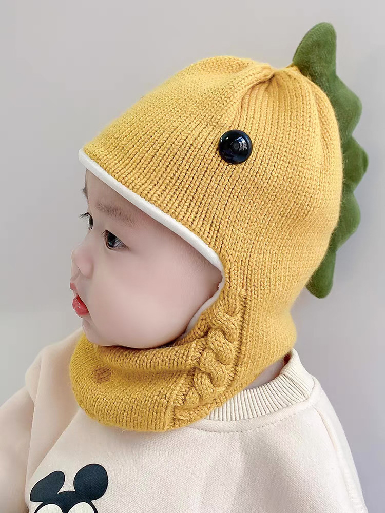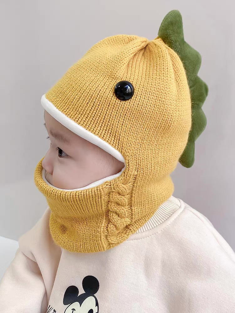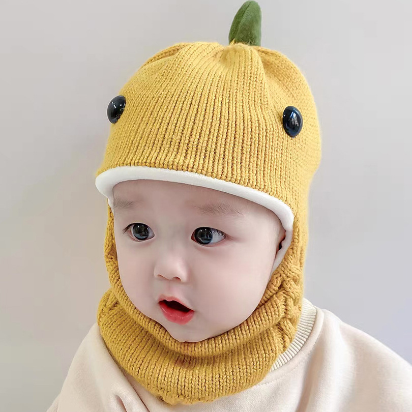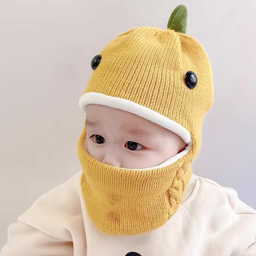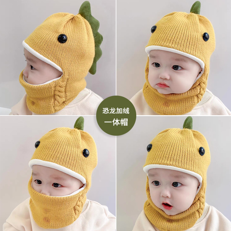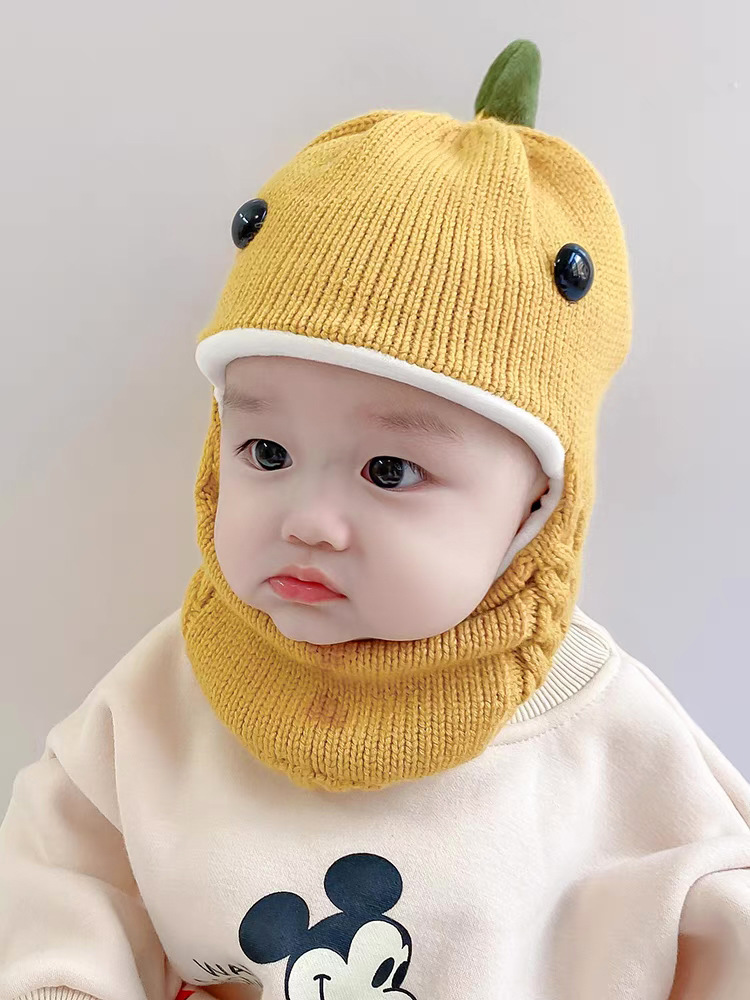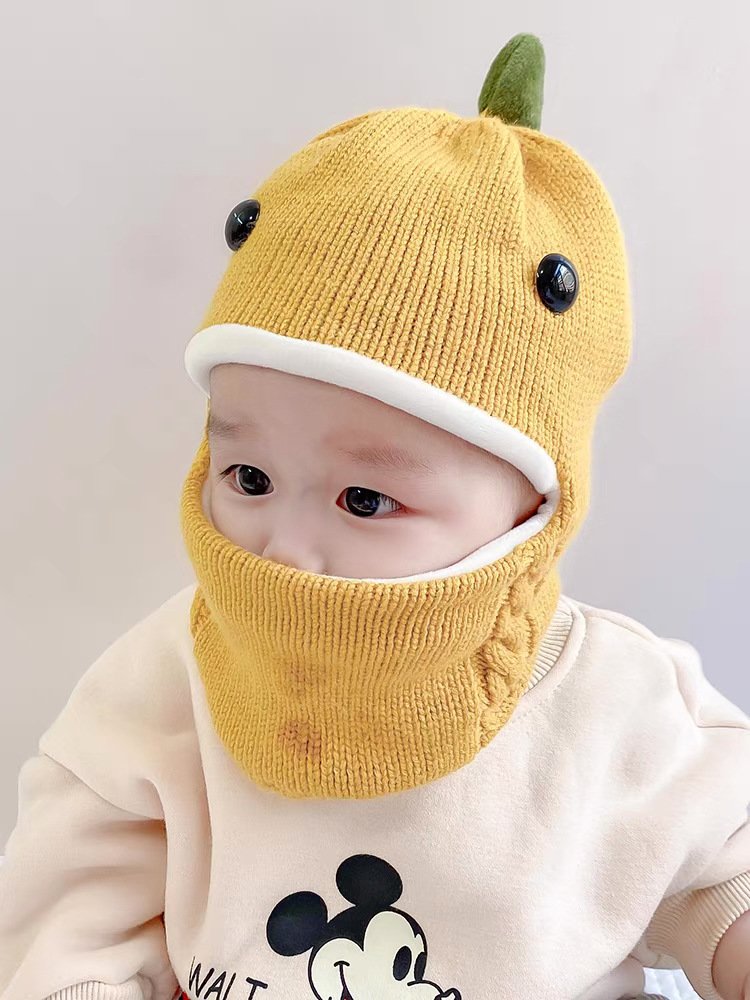 宝宝帽子保暖围脖婴幼儿童针织加绒帽护脸耳头套可爱男女户外防寒