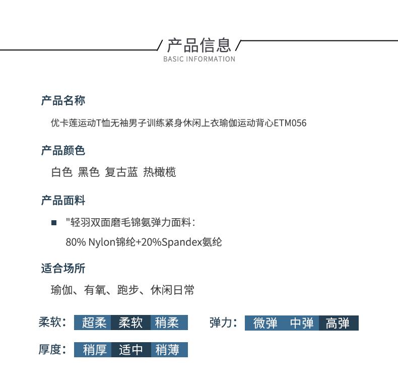 春夏新款优卡莲运动t恤ETM056无袖男子紧身休闲上衣运动背心