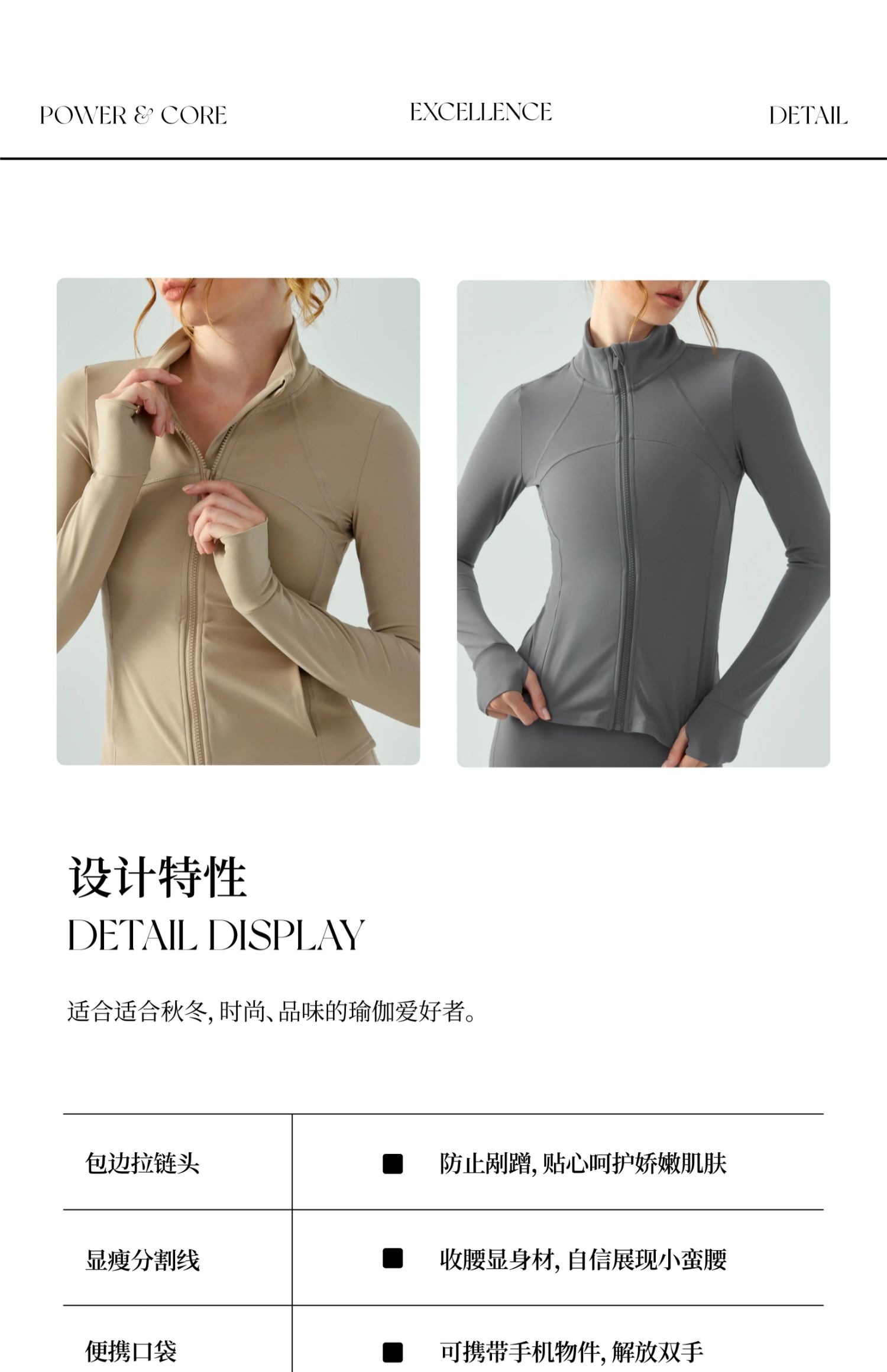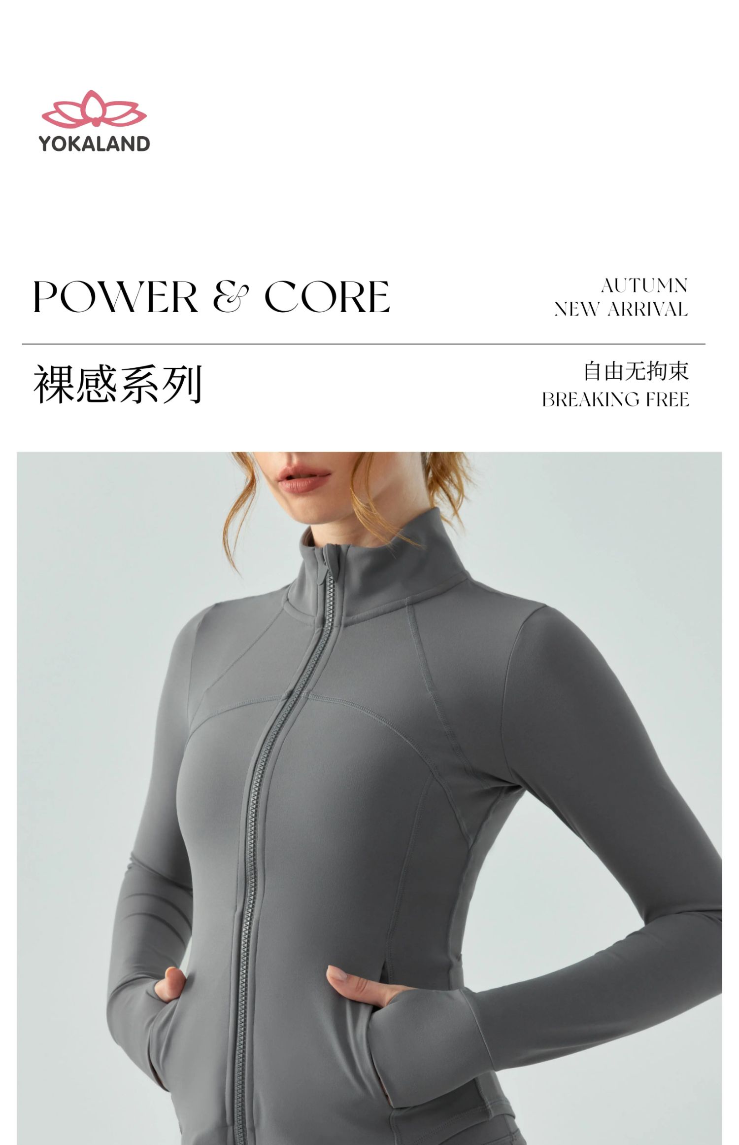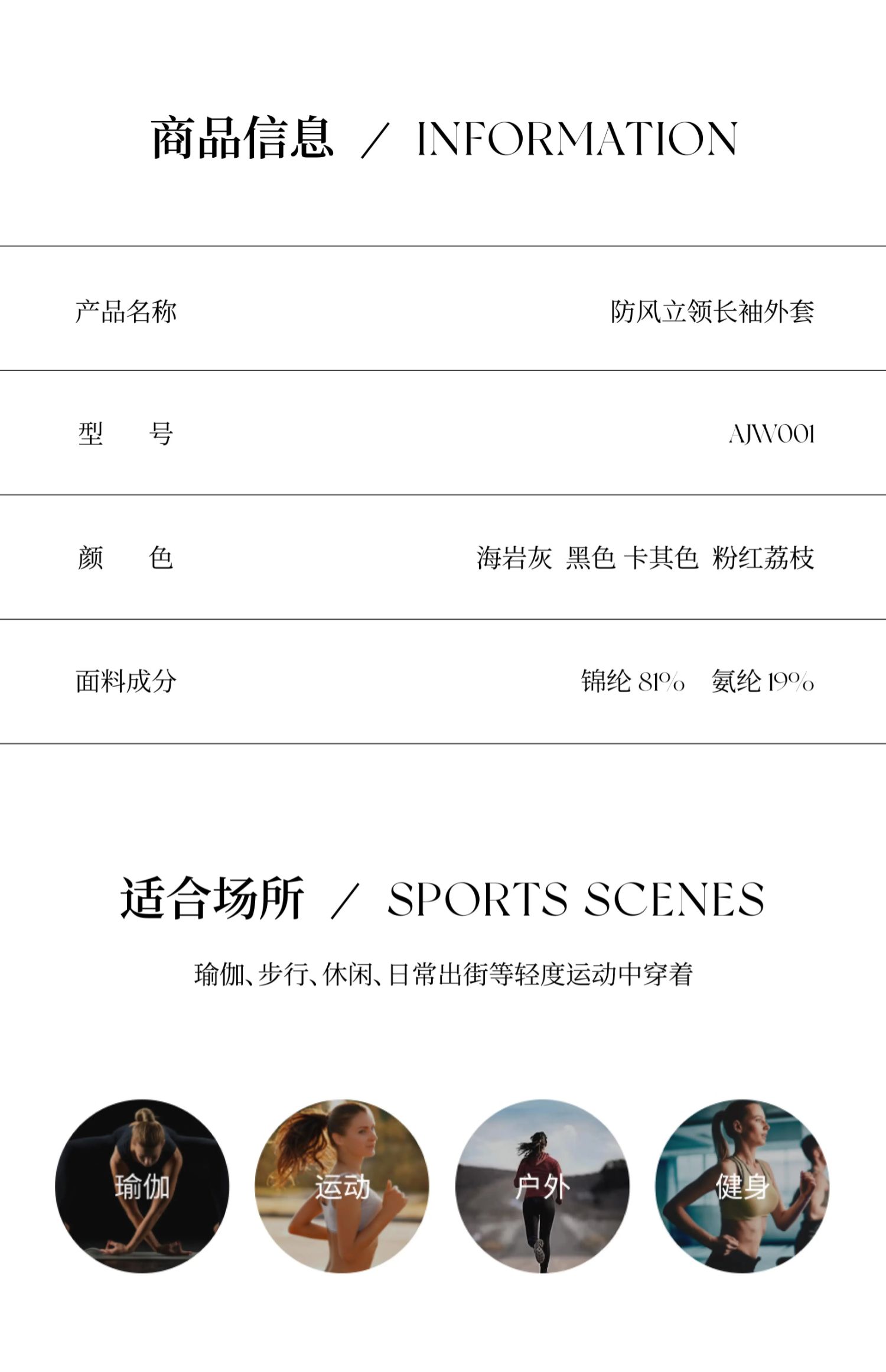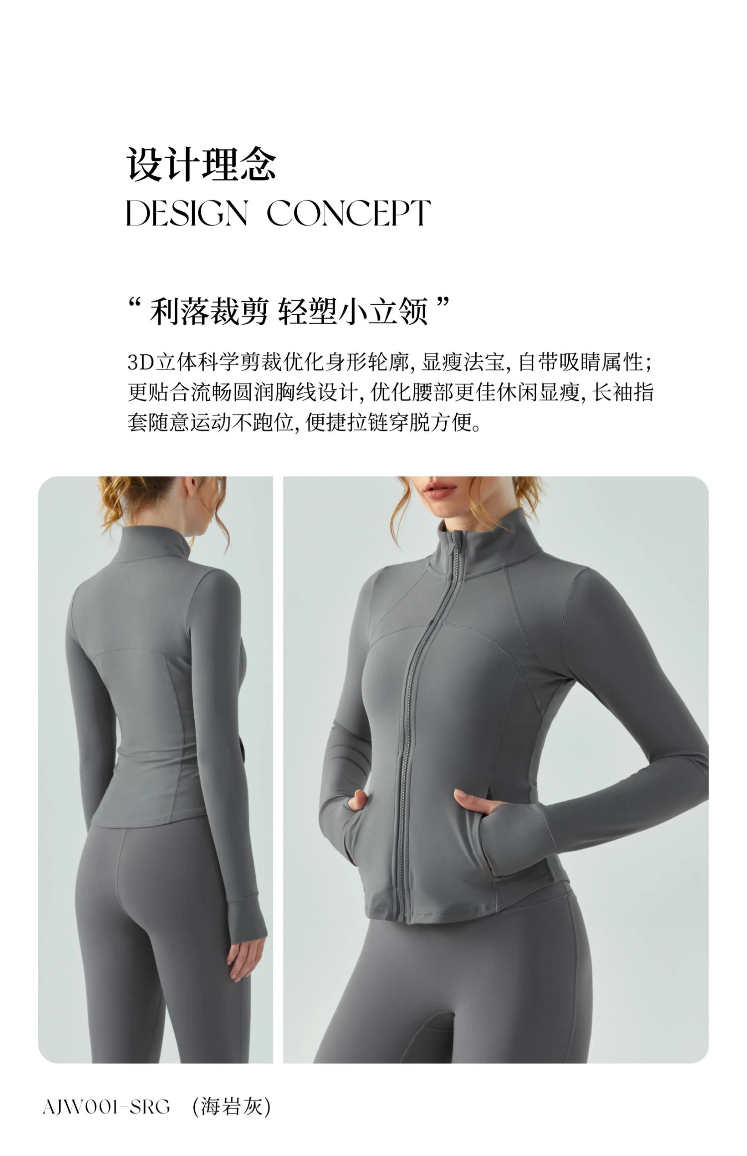 优卡莲YOKALAND秋季防风立领长袖外套女显瘦运动健身上衣AJW001