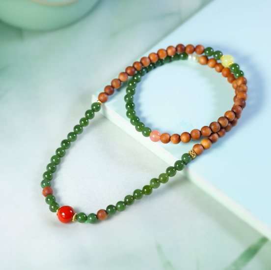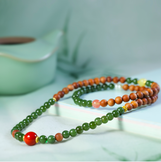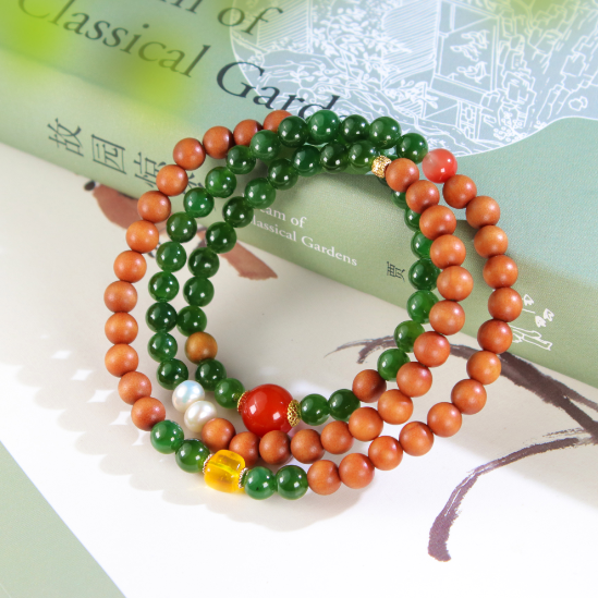 【手串】老山檀碧玉多圈手串