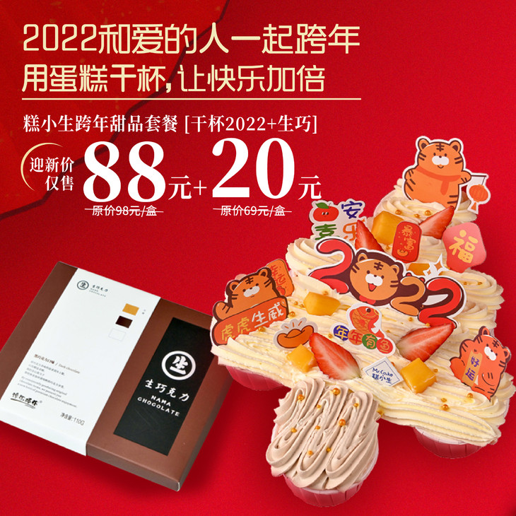 跨年蛋糕【干杯2022】由7个乳酪杯子蛋糕+安佳动物奶油和新年祝福语组成~