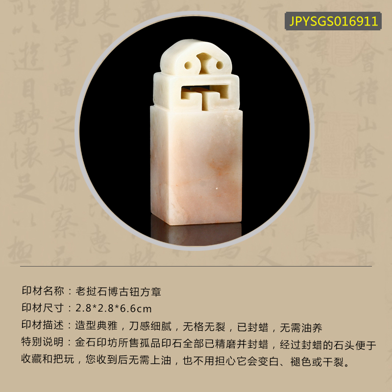 孤品016911:老挝石博古钮方章-2.8*2.8*6.6cm