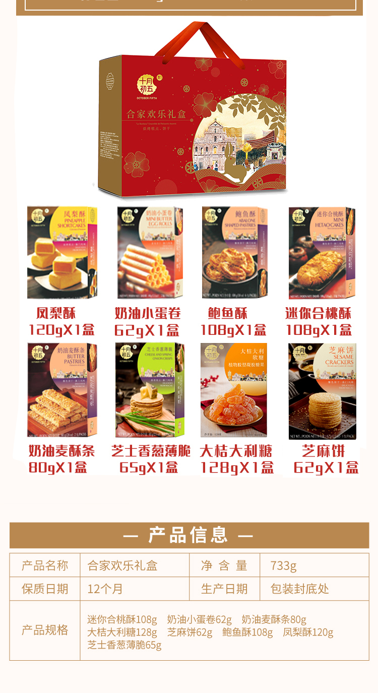 【十月初五-733g合家欢乐礼盒 】 零食礼盒组合装传统糕点年货年会春节送礼礼盒