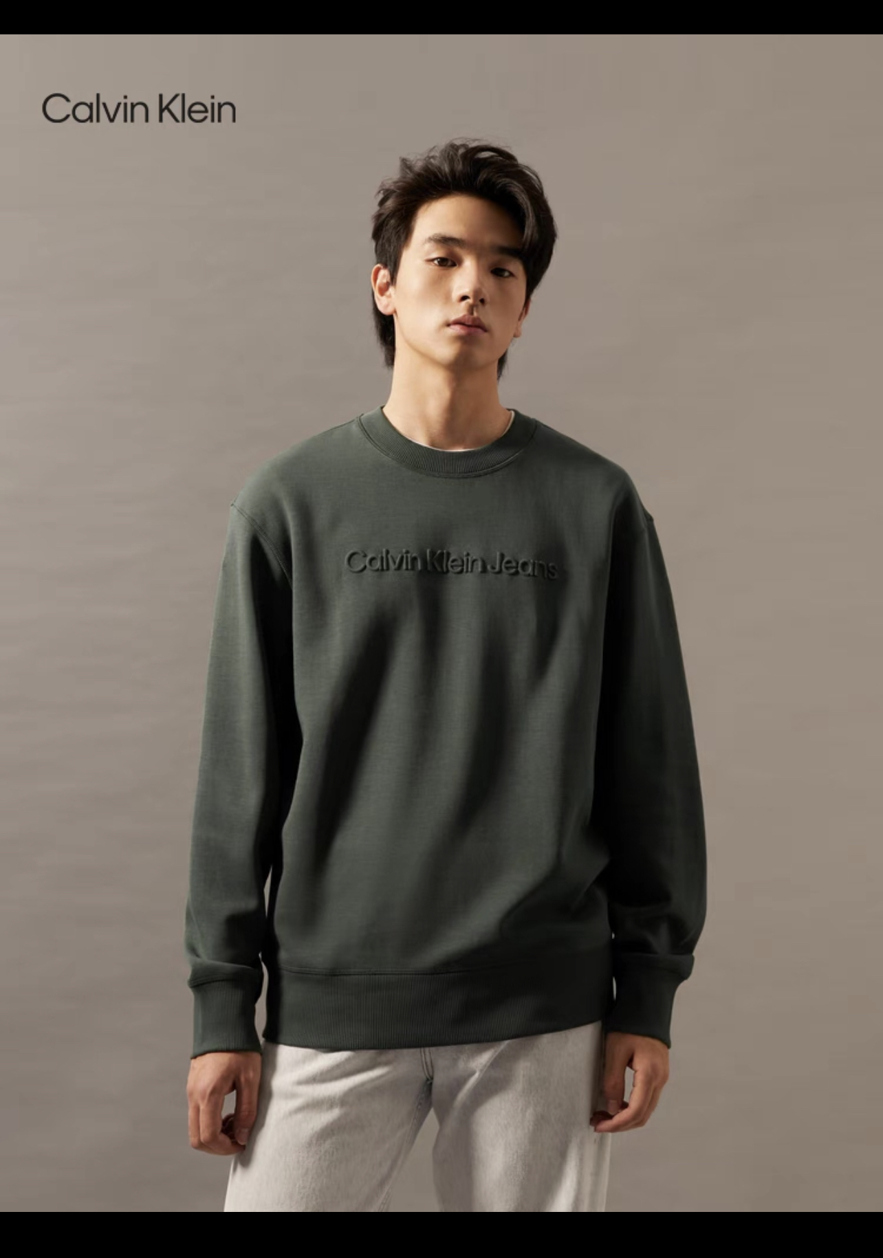 西K 秋冬加绒厚款 空气立体压花字母 圆领卫衣