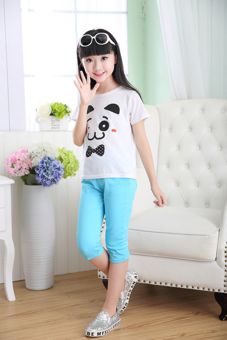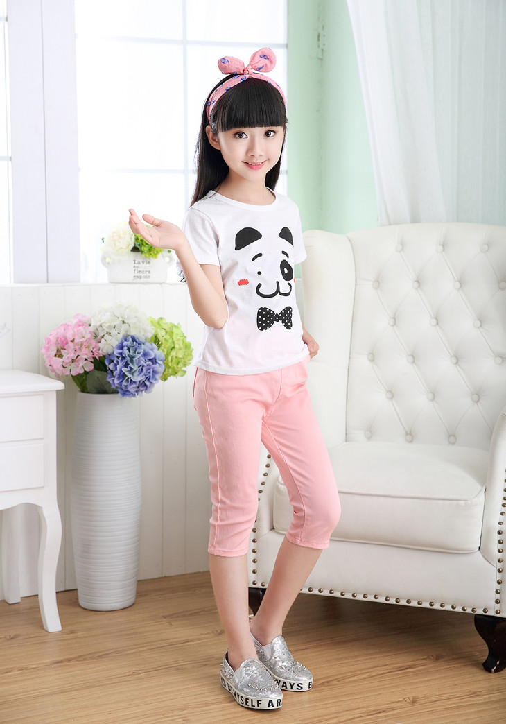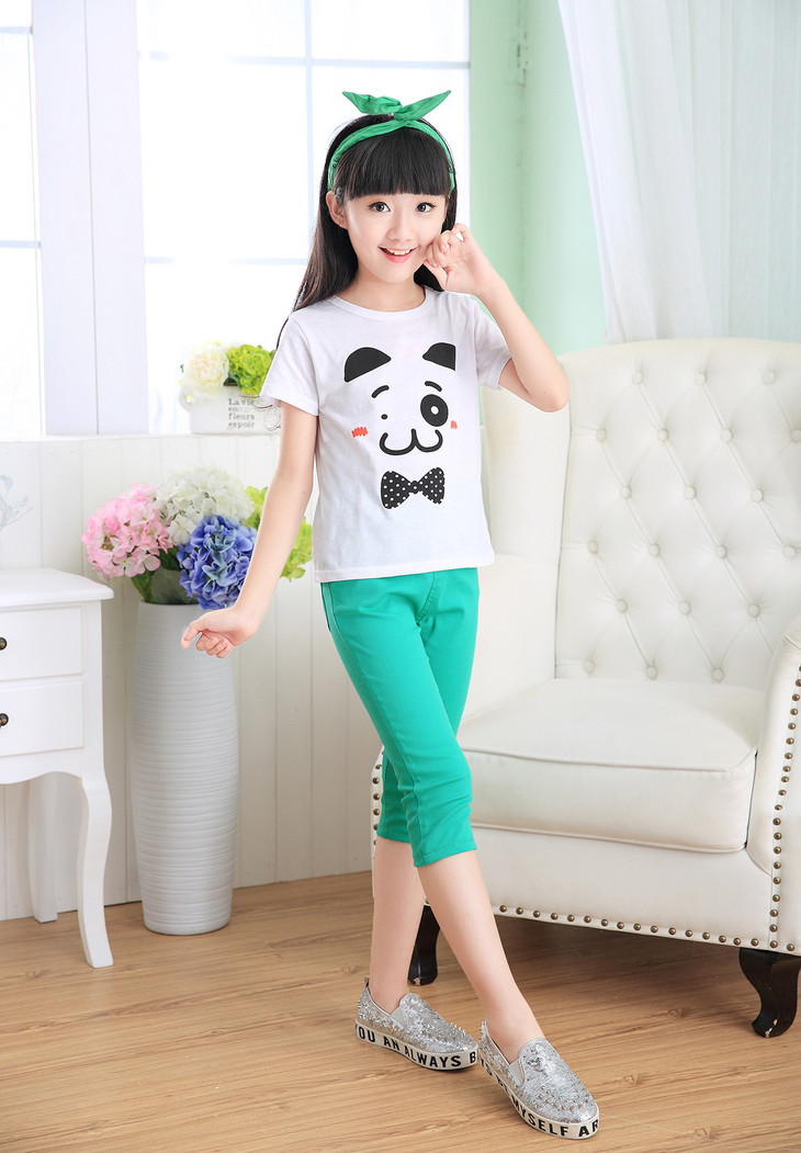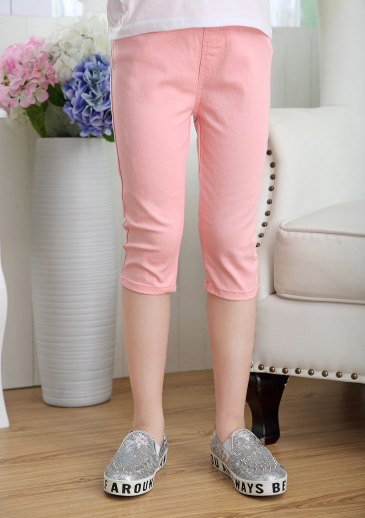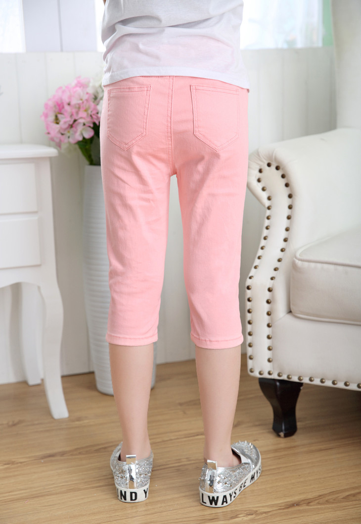 【女童裤子】女童7分裤糖果色纯棉牛仔裤 儿童7分裤