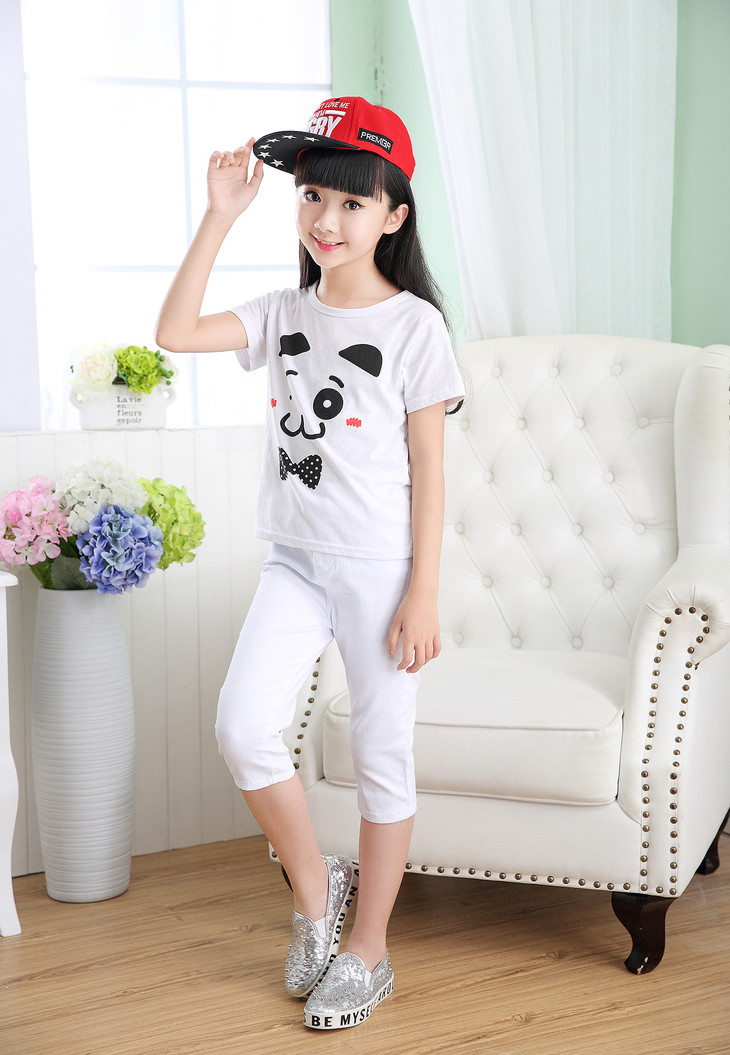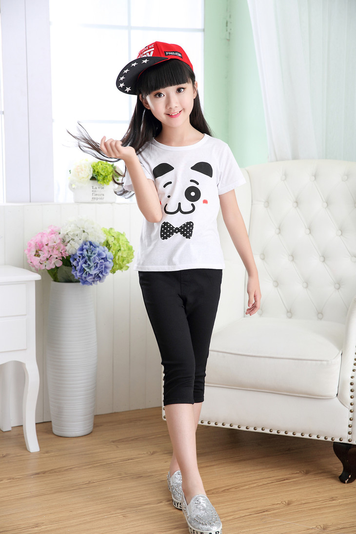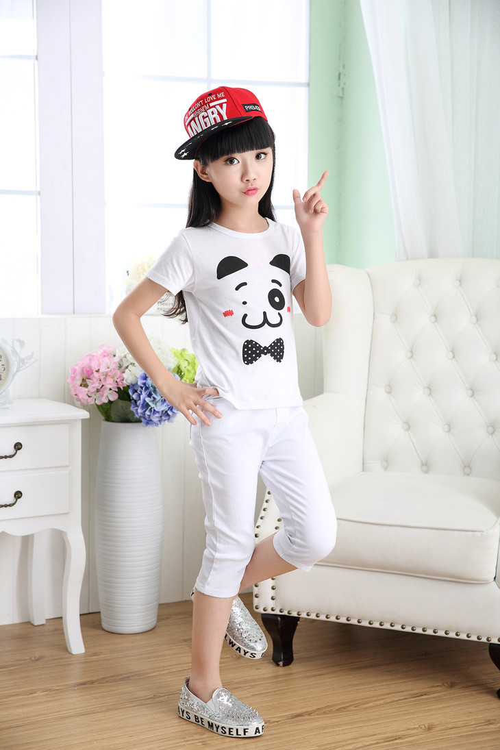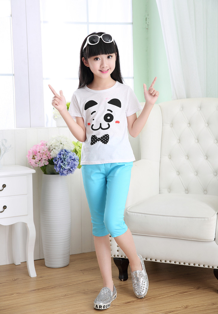 【女童裤子】女童7分裤糖果色纯棉牛仔裤 儿童7分裤