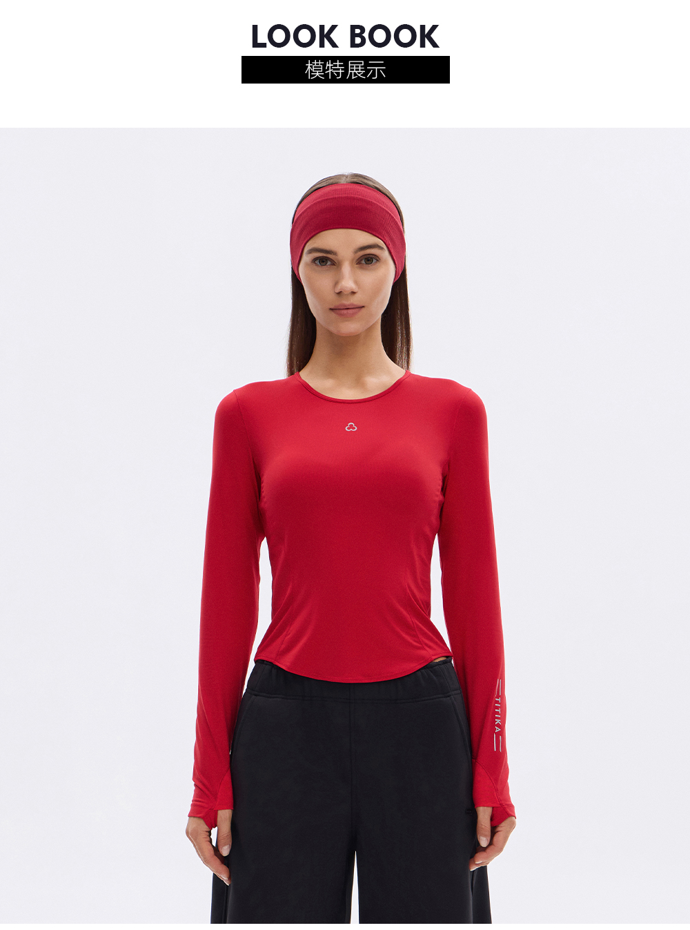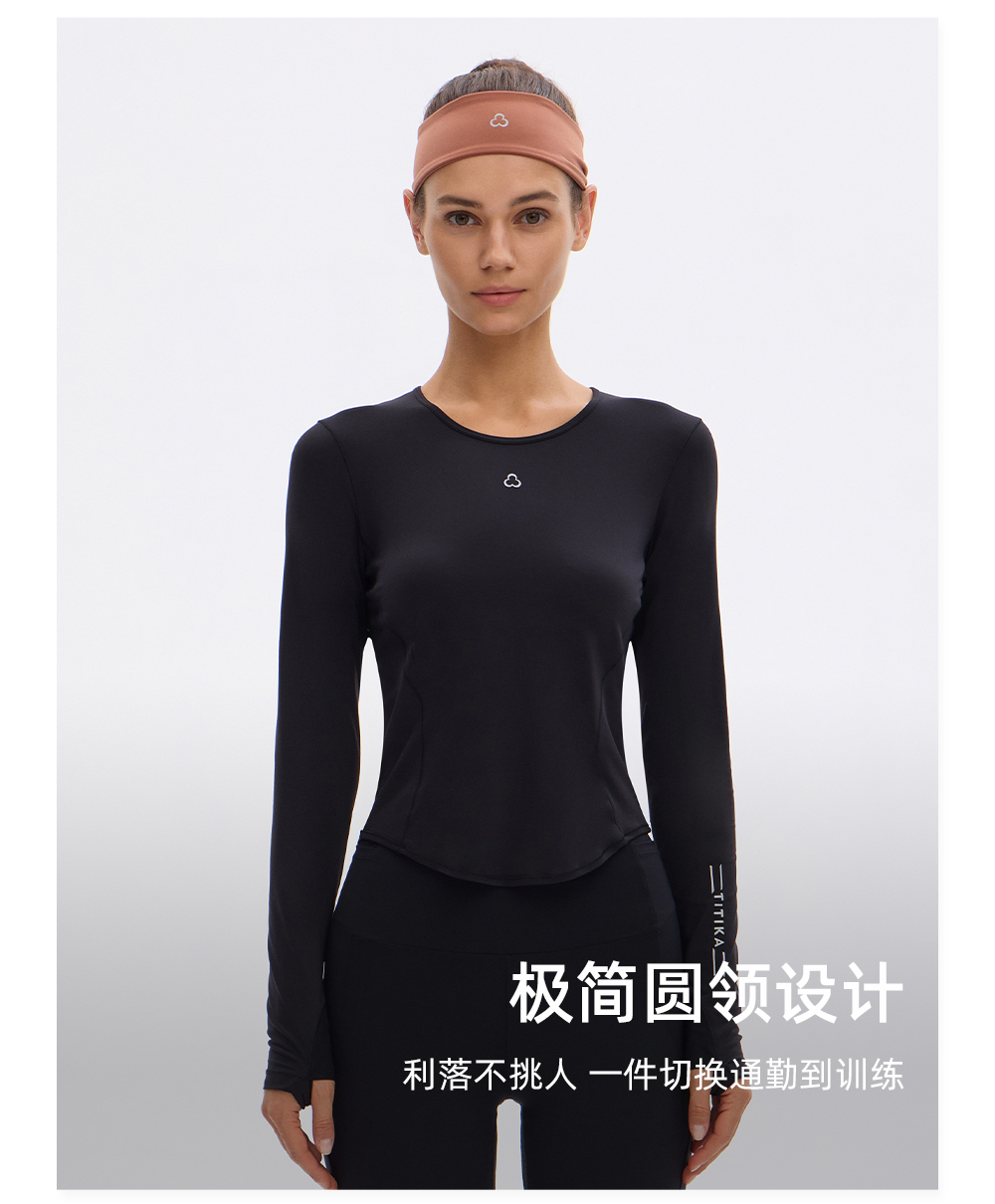 TITIKA云柔圆领仿生运动长袖T恤跑步休闲运动紧身上衣女21228