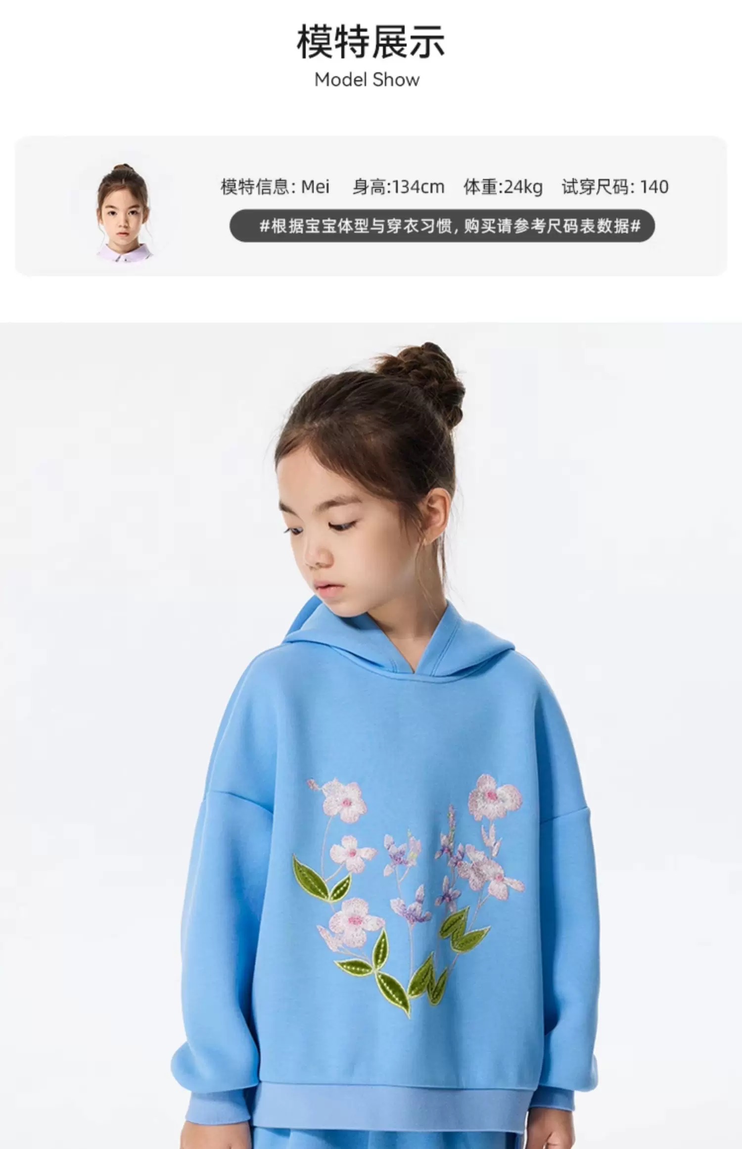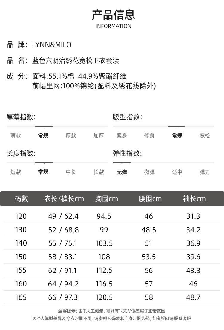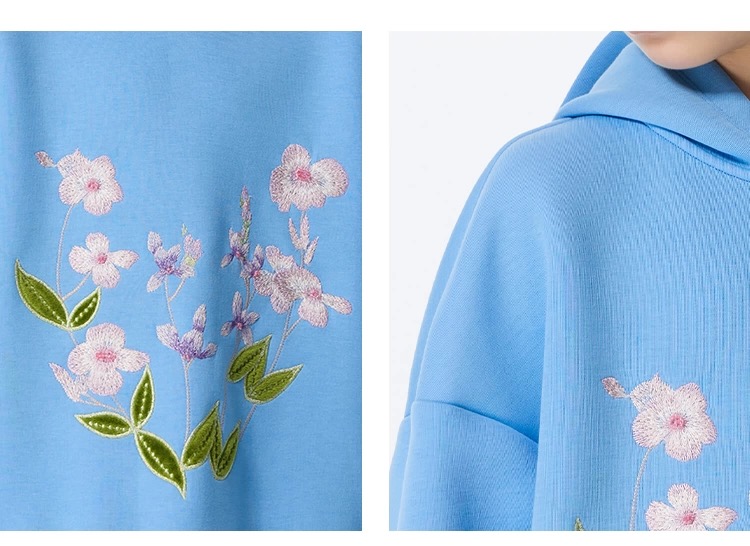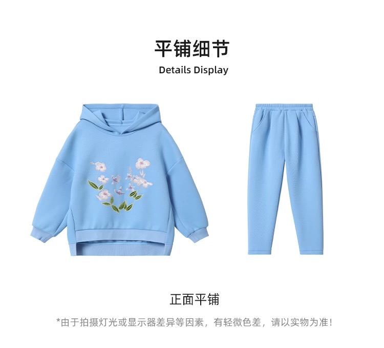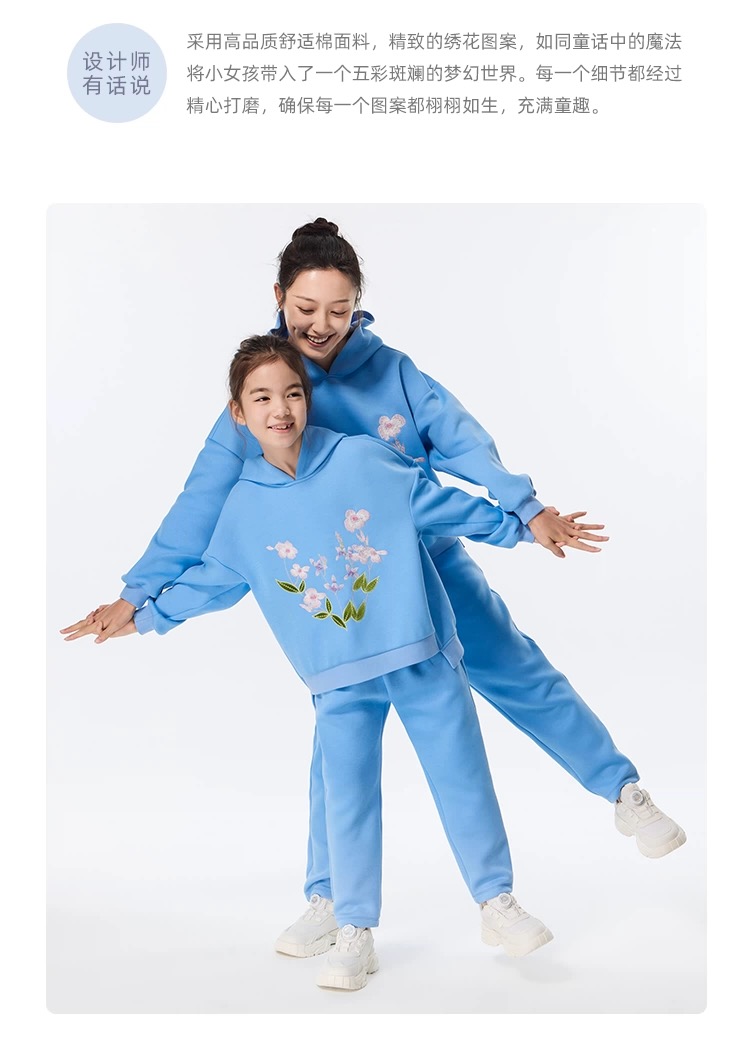 【春上新】8楼 LYNN&MILO琳麦罗蓝色六明治绣花宽松卫衣套装