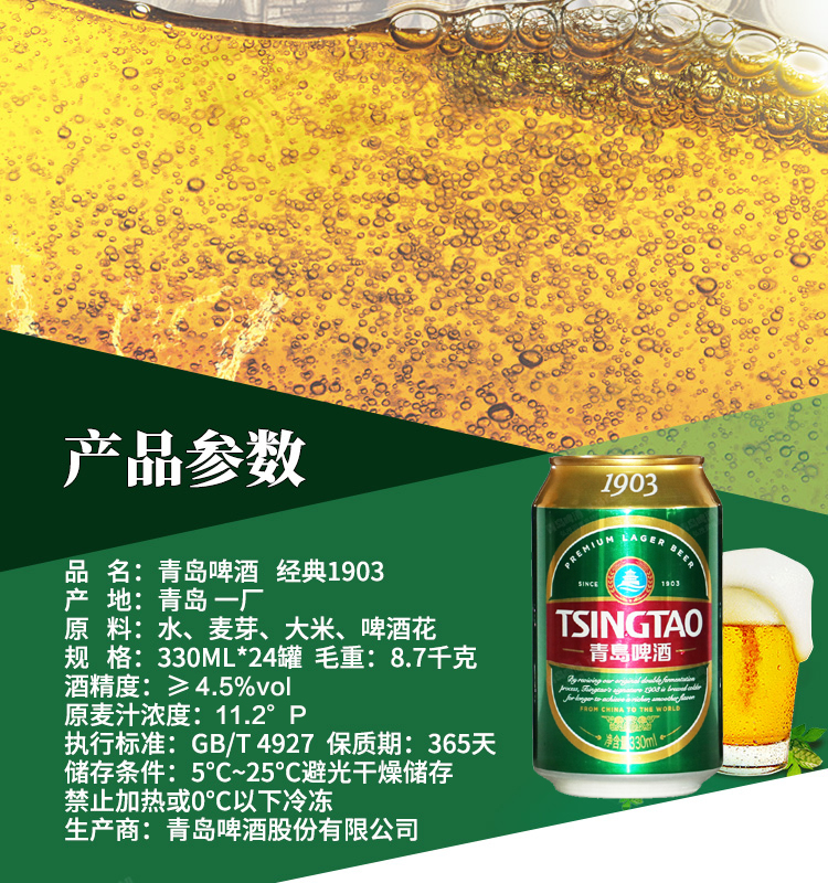 【临期特价】青岛啤酒 经典1903易拉罐 330ml*24罐