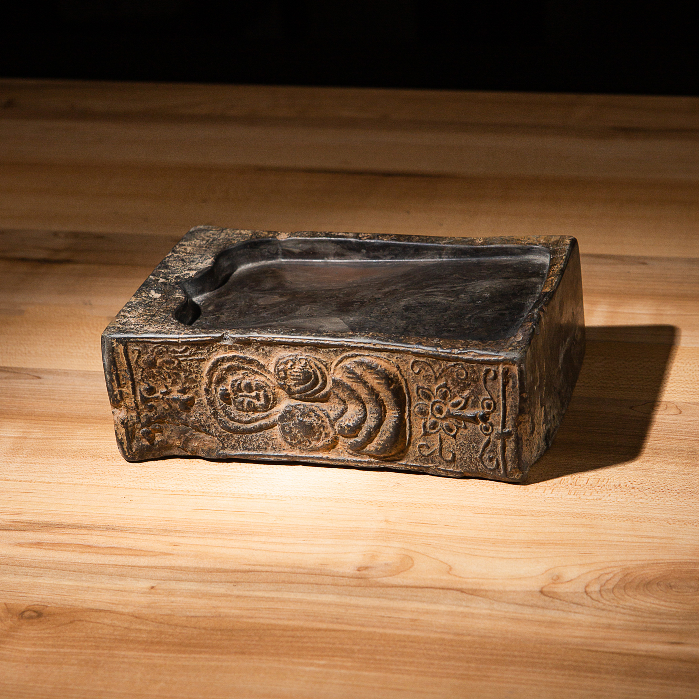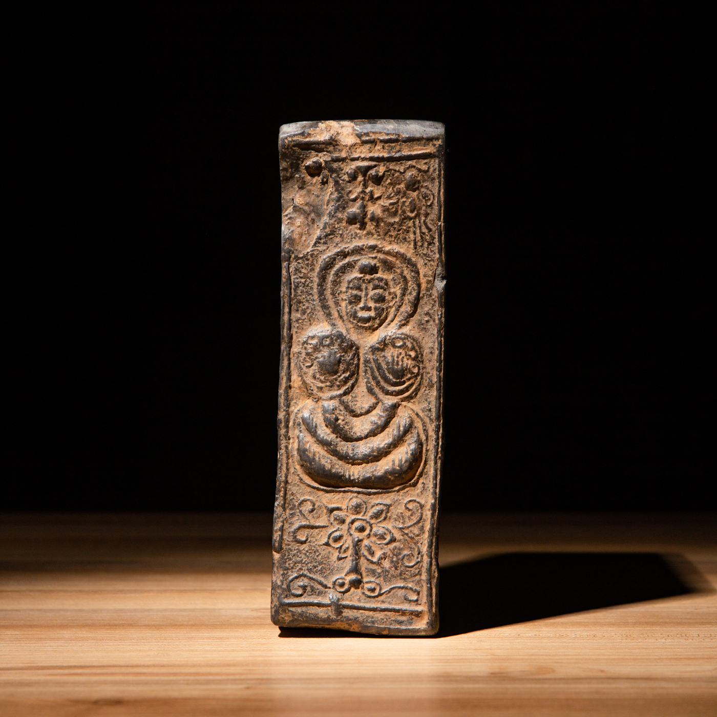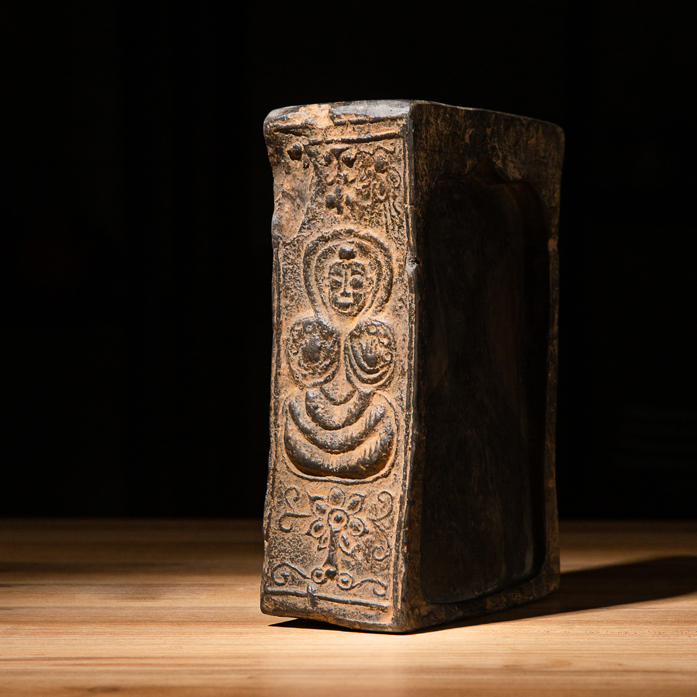 汉晋佛像古砖制砚,佛像刻画精美端庄,器型典雅,质地细腻,极其稀有,为文人案头之珍品。