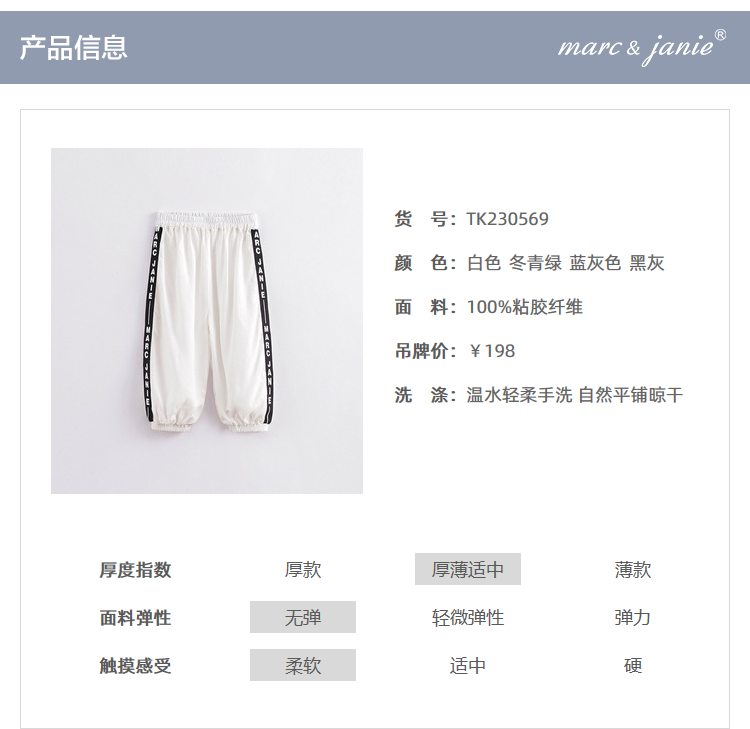 马克珍妮夏装新款 男童舒适垂感防蚊裤 儿童裤子230569