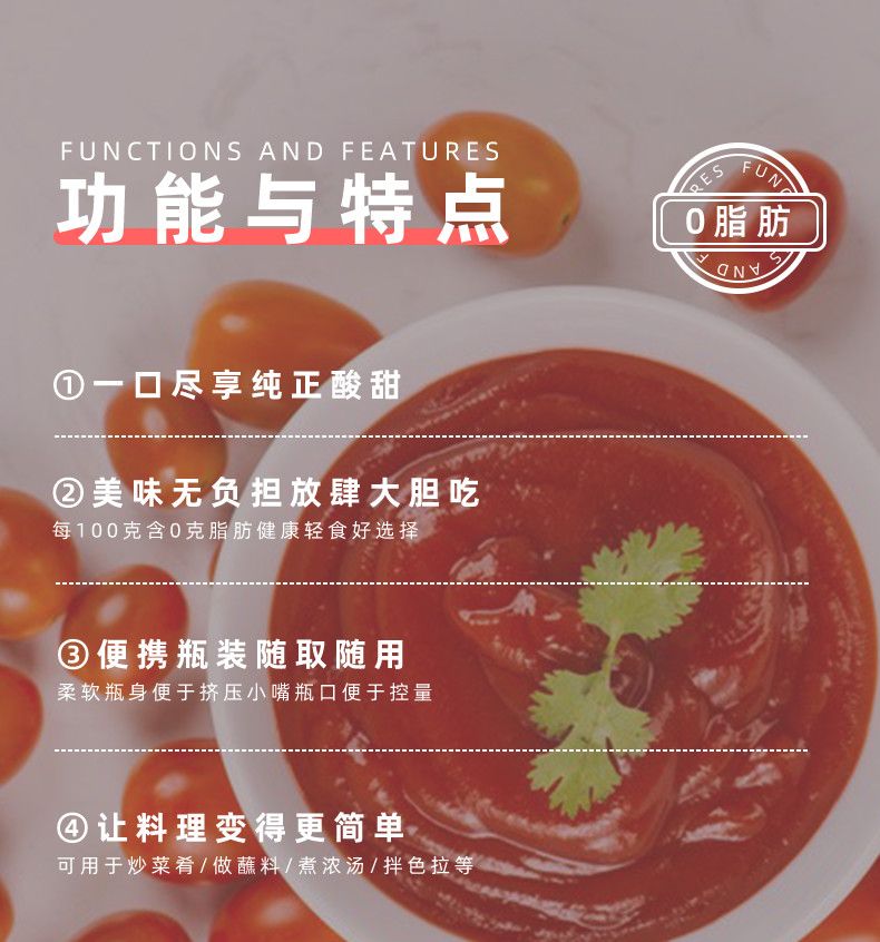 番茄酱0脂肪酱料瓶装零蕃番茄沙司拉炸鸡酱披萨薯条番茄组合蘸酱