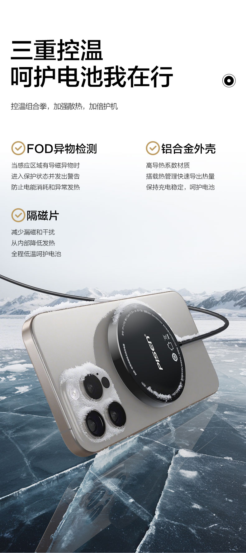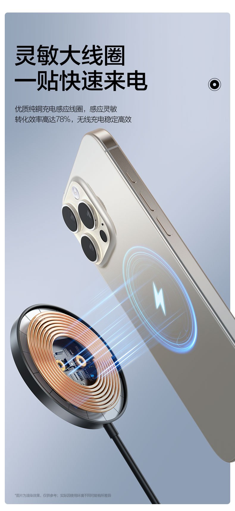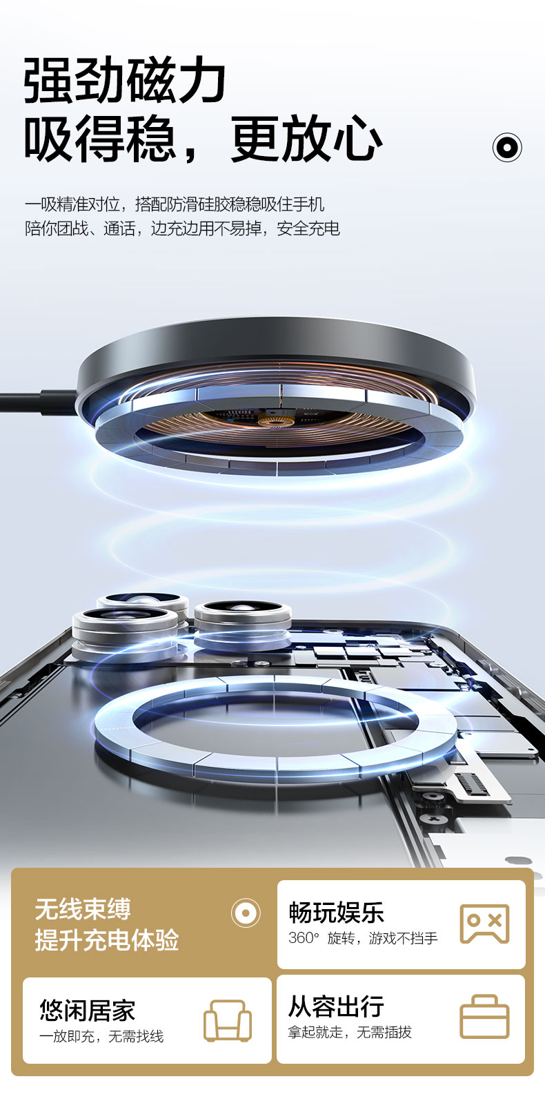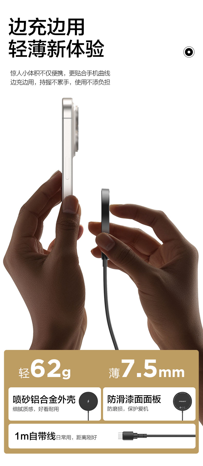 品胜 自带线磁吸无线充电器 Magsafe磁吸快充iPhone16ProMax充电板适用苹果15/14华为小米三星手机充电底座