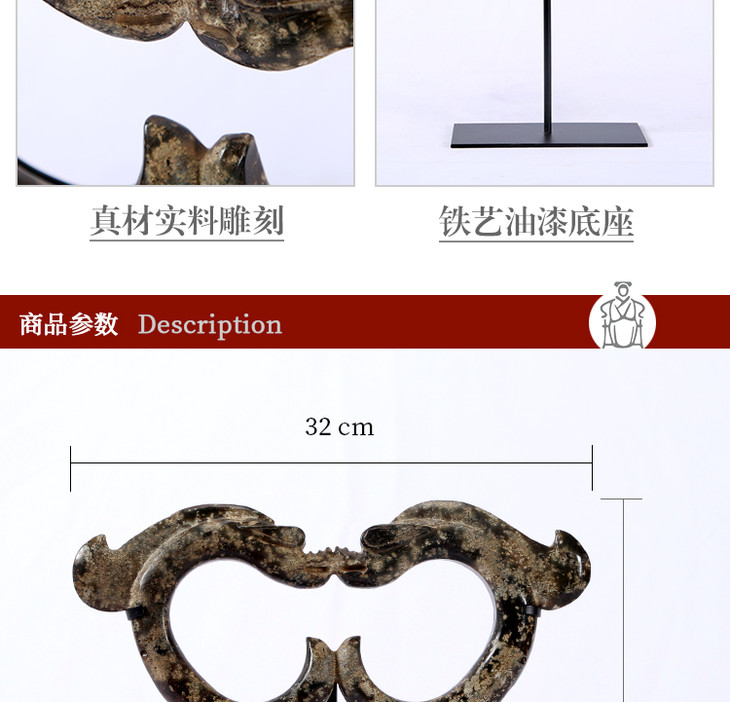 八卦玉片 复古摆件 岫玉神兽 Disk with stand
