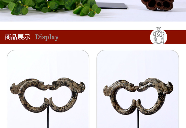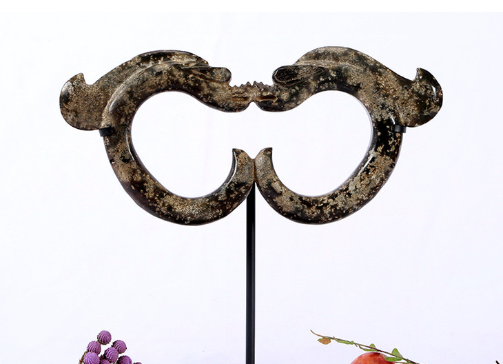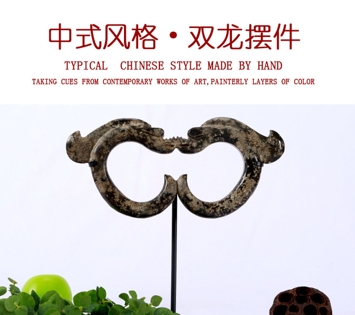 双玉龙摆件红山玉器中式摆件