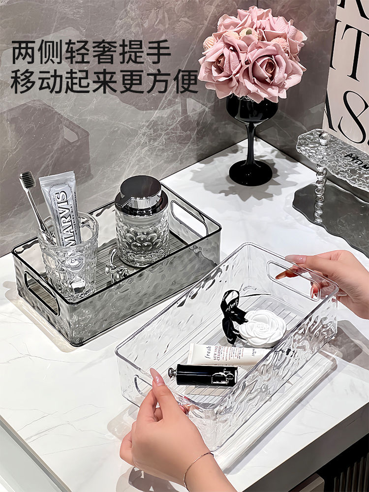 桌面收纳盒亚克力透明化妆品收纳千鸟格学生梳妆台整理杂物置物架