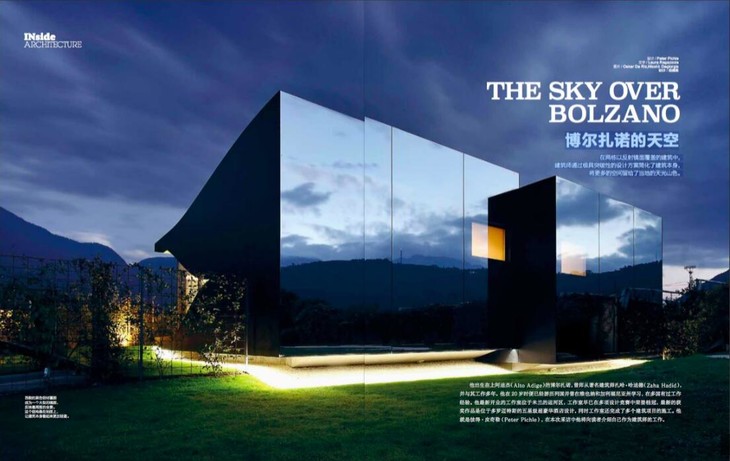 在两栋以反射镜面覆盖的建筑中, 建筑师通过极具突破性的设计方案简化了建筑本身, 将更多的空间留给了当地的天光山色。