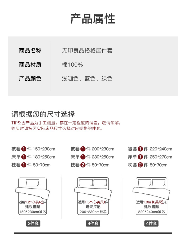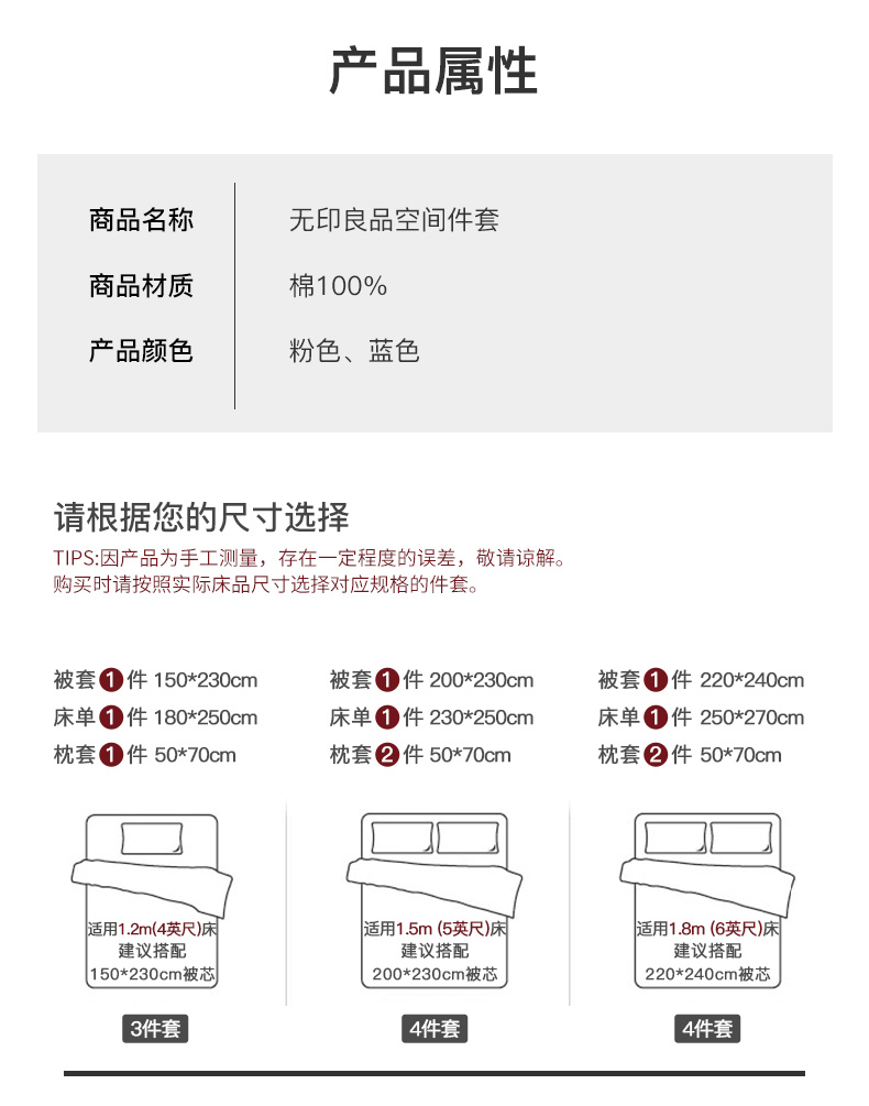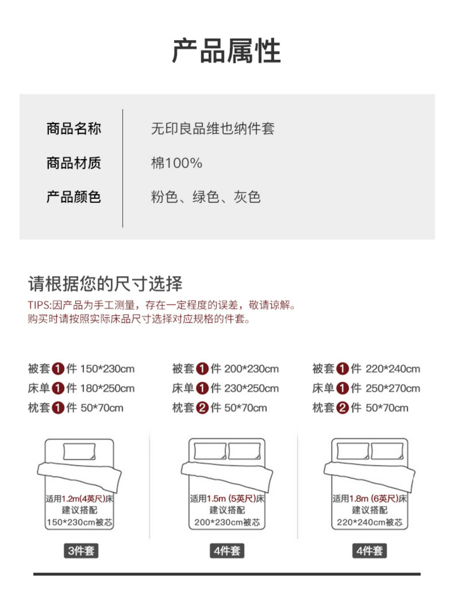 本链接推荐商品为适合1.2m和1.5m床的三件套商品,套装中包含枕套1只,床单/床笠1个,被套1个,共计3件。