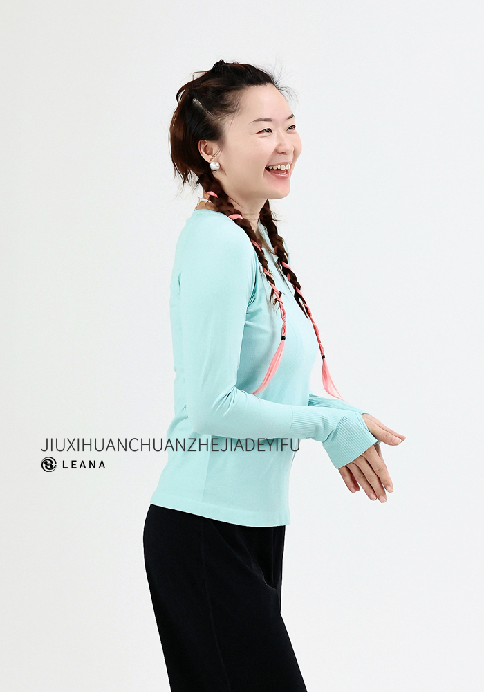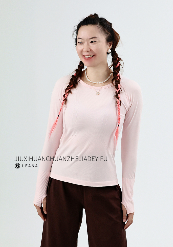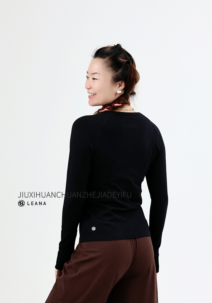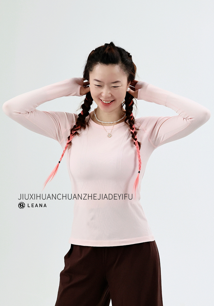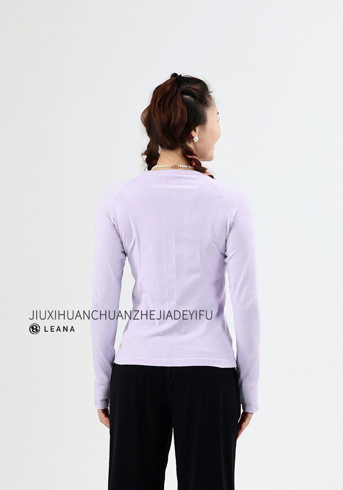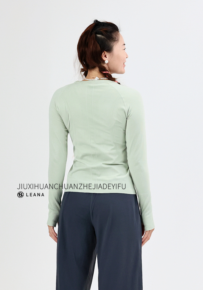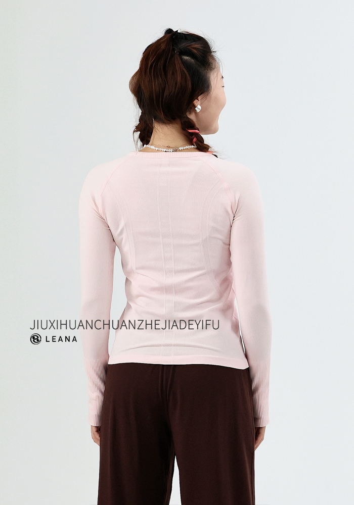 LEANA【无缝长袖】秋裸感立体修身长袖透气圆领瑜伽跑步运动上衣LN42002无胸垫