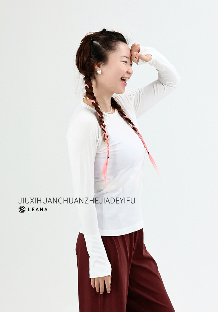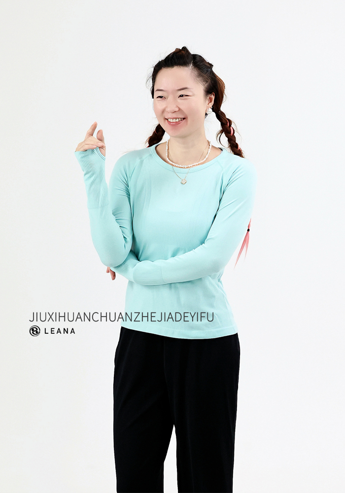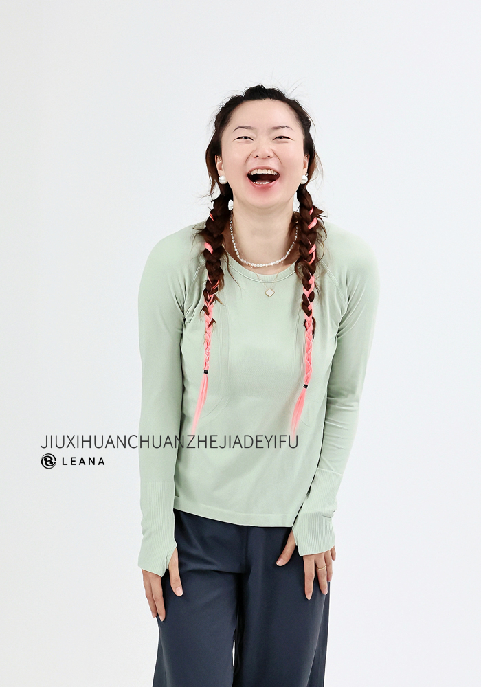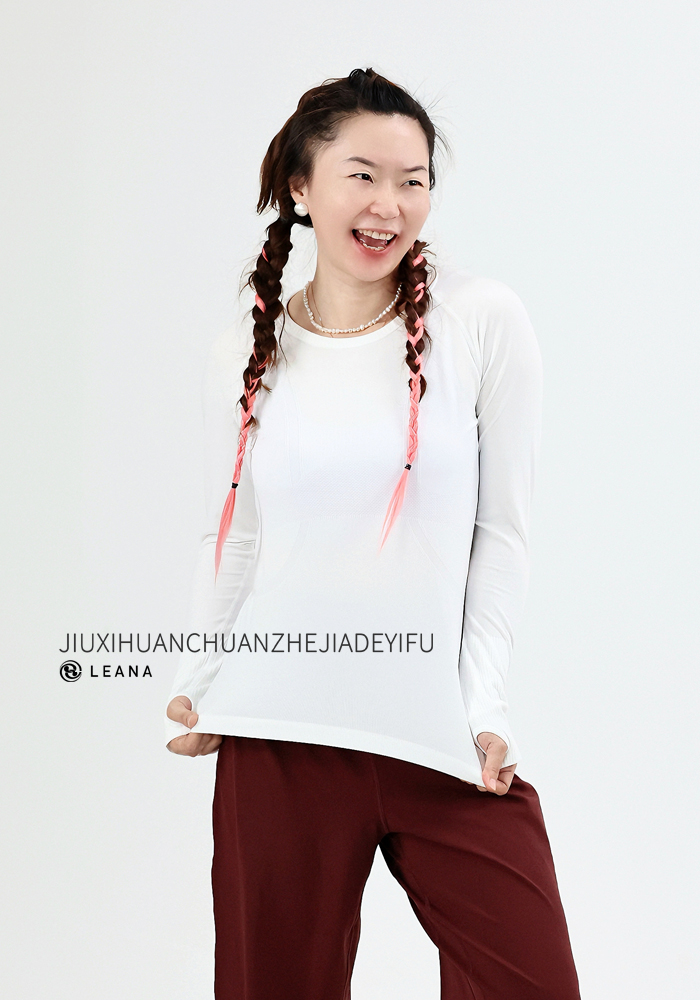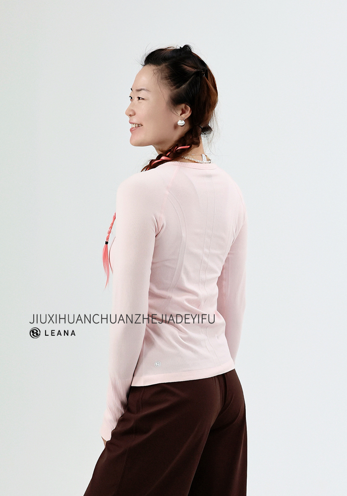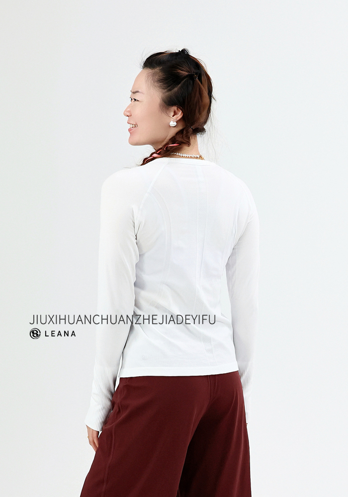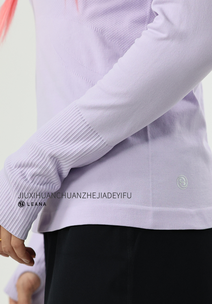 LEANA【无缝长袖】秋裸感立体修身长袖透气圆领瑜伽跑步运动上衣LN42002无胸垫