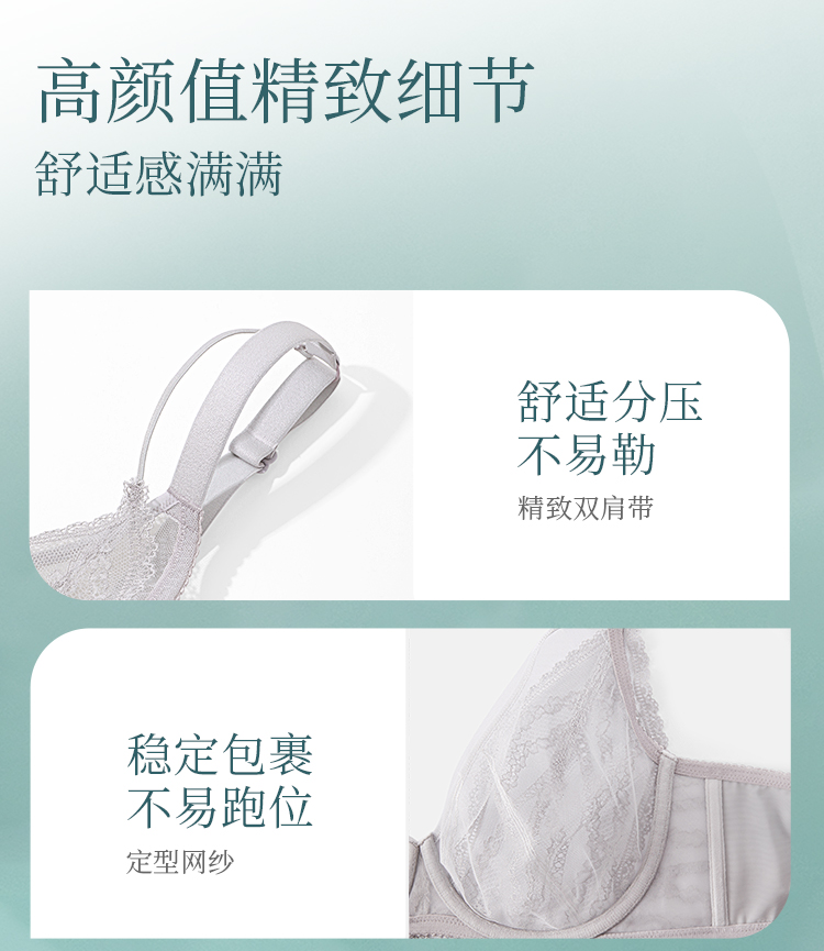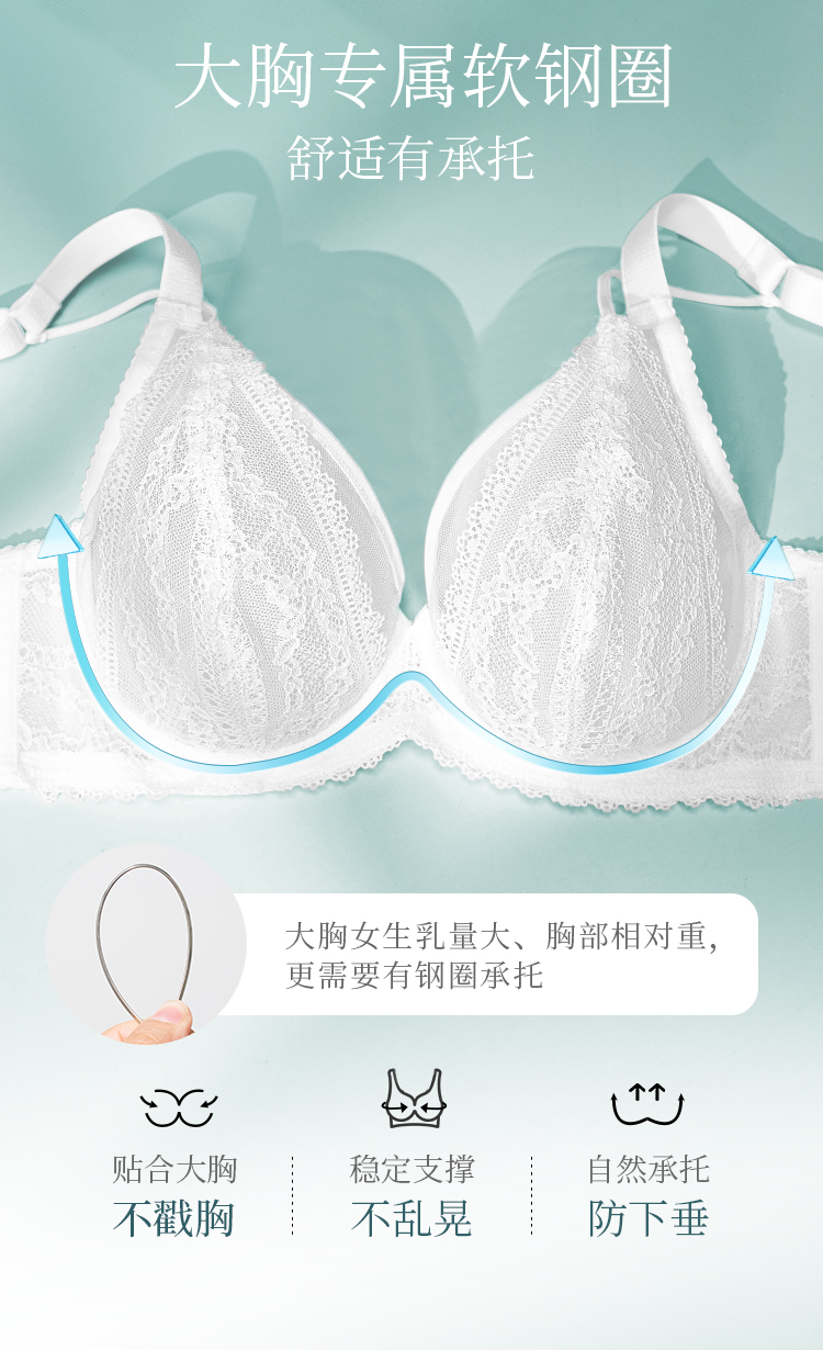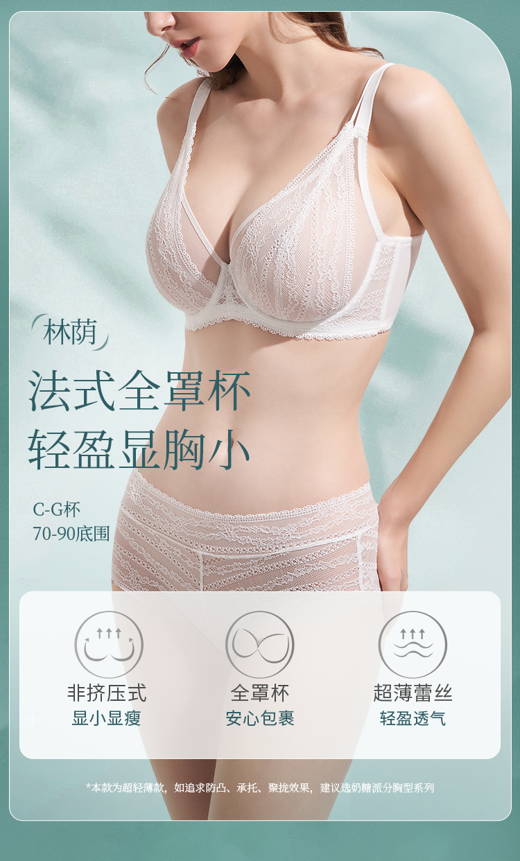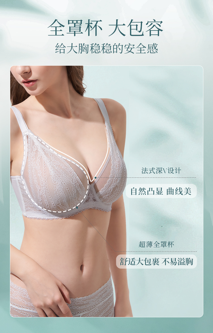 [林荫]大胸显小文胸超薄全罩杯性感蕾丝透气夏季双肩带内衣女