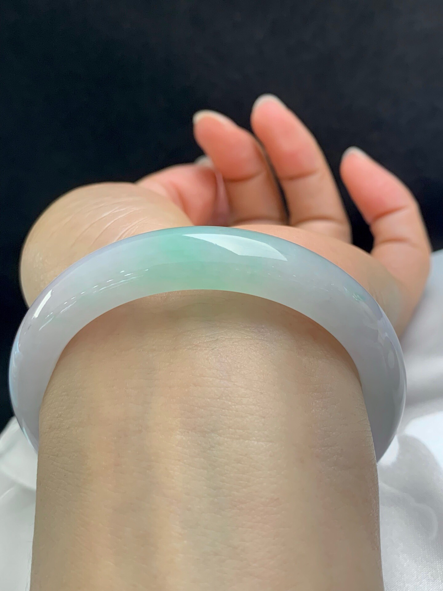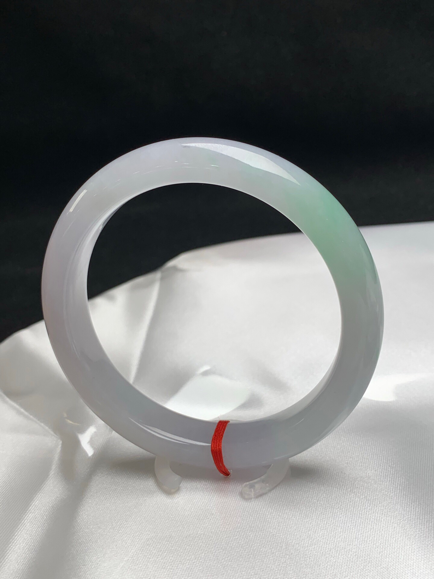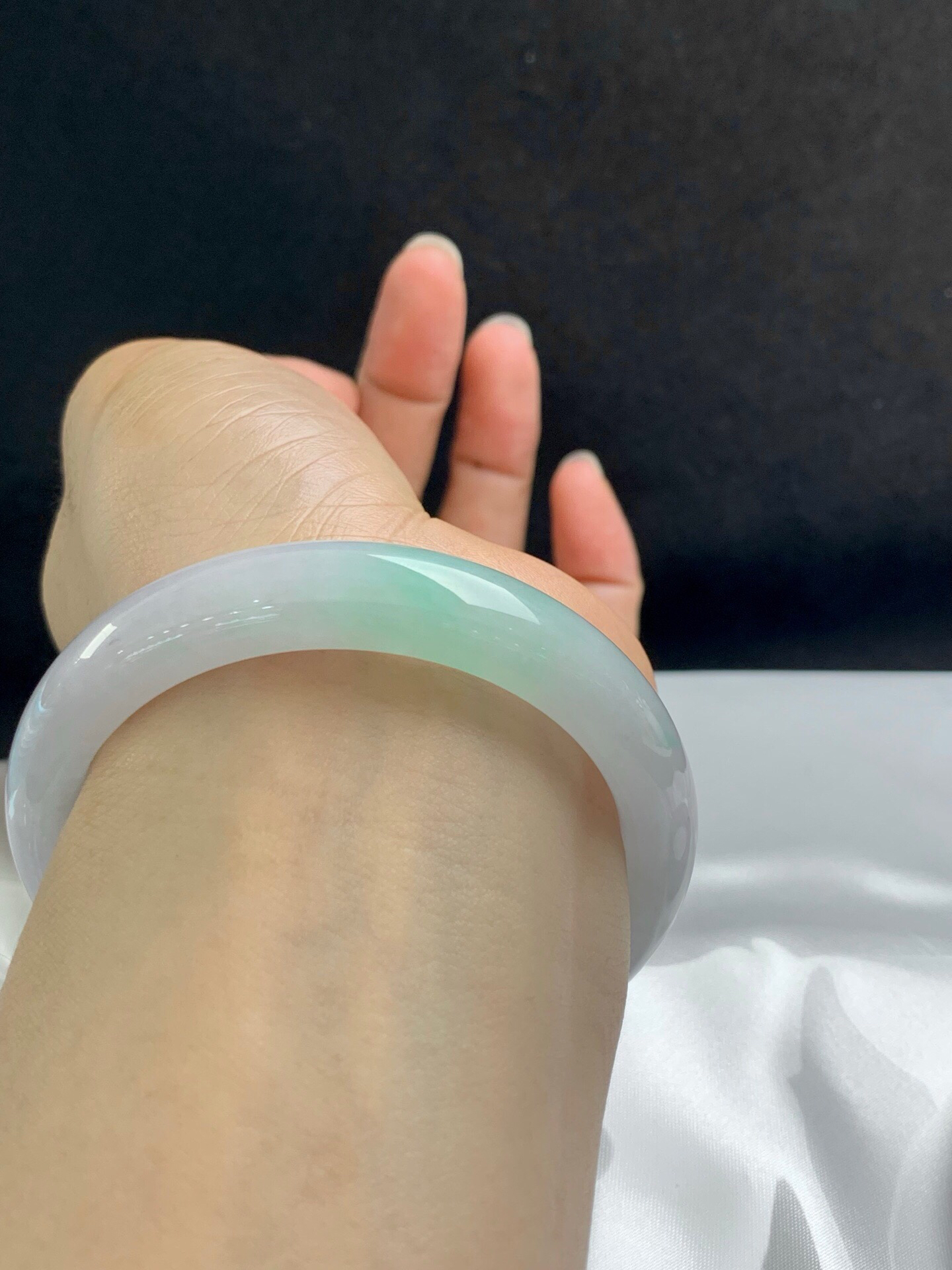 620634,56圈口,冰飘绿正圈平安镯,白底飘甜绿花,种水好,清爽秀气
