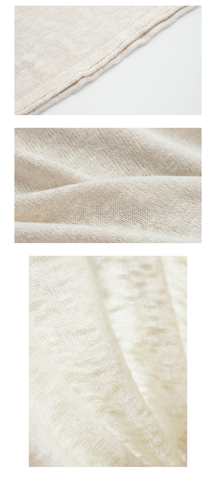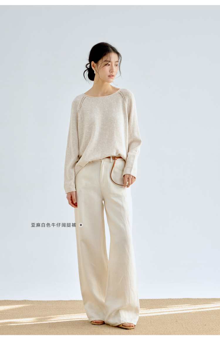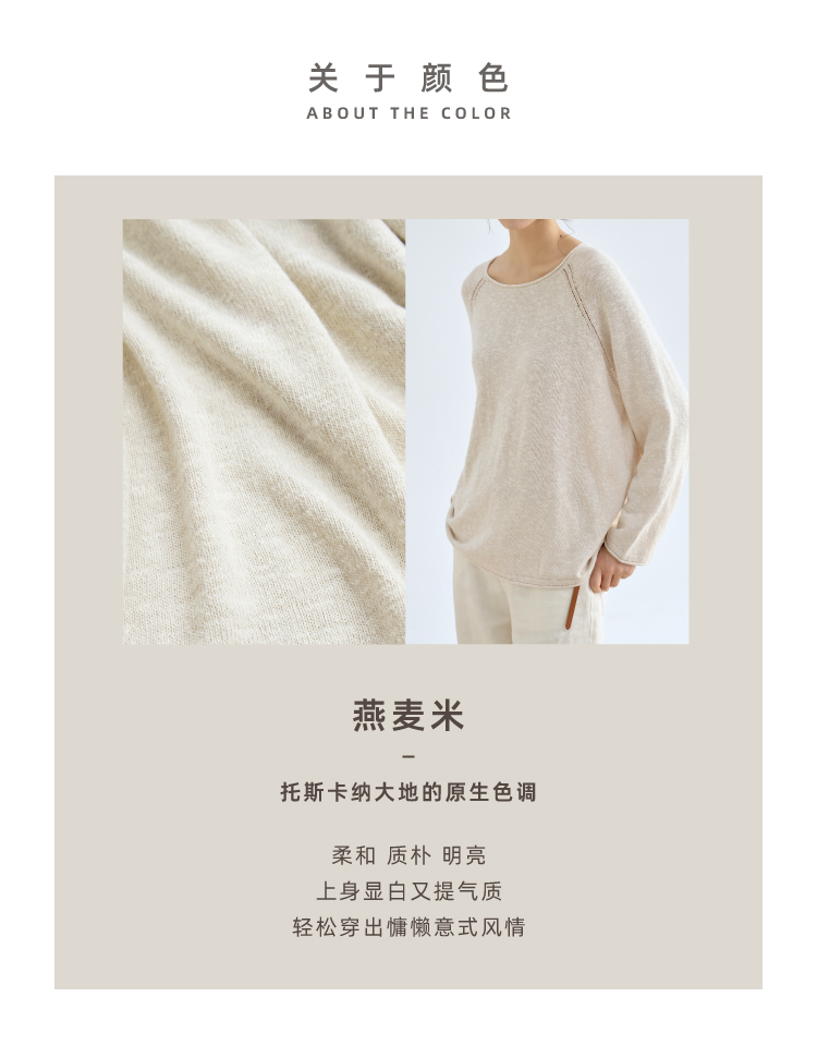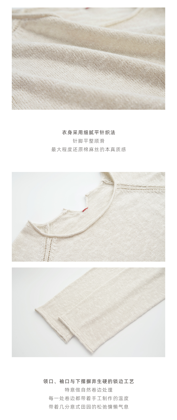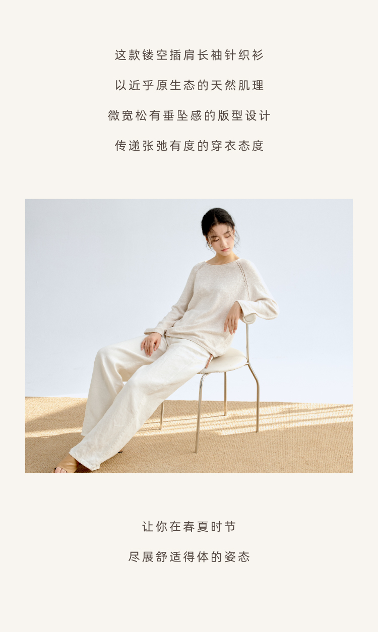托斯卡纳的艳阳·棉麻丝卷边领镂空插肩长袖针织衫