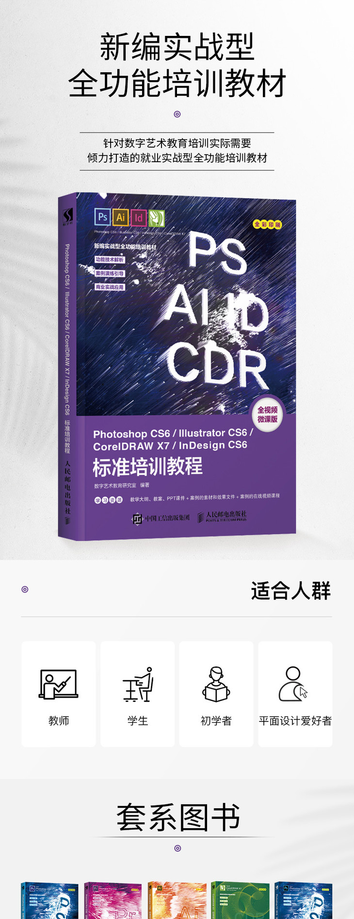 《Photoshop CS6/Illustrator CS6/CorelDRAW X7/InDesign CS6标准培训教程》根据高职院校教师和学生的实际需求,以平面设计的典型应用为主线,通过多个精彩实用的案例,全面细致地讲解如何利用Photoshop、Illustrator、CorelDRAW和InDesign来完成专业的平面设计项目,使读者在掌握软件功能和制作技巧的基础上,获得设计灵感,开拓设计思路,提高设计能力。